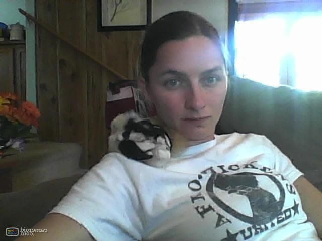 My living room has a bug problem. Not my fault--the room was poorly built when it was added on, so wee critters are always wandering in through the cracks and crevices, so I decided to bring two of my favorite chickies in to clean house for me. Leonard and Rosie (leghorn and silkie, respectively) had a grand time taking care of the rollie-pollies and crickets before hopping onto the couch, climbing up to my shoulder, and taking a nap. <3