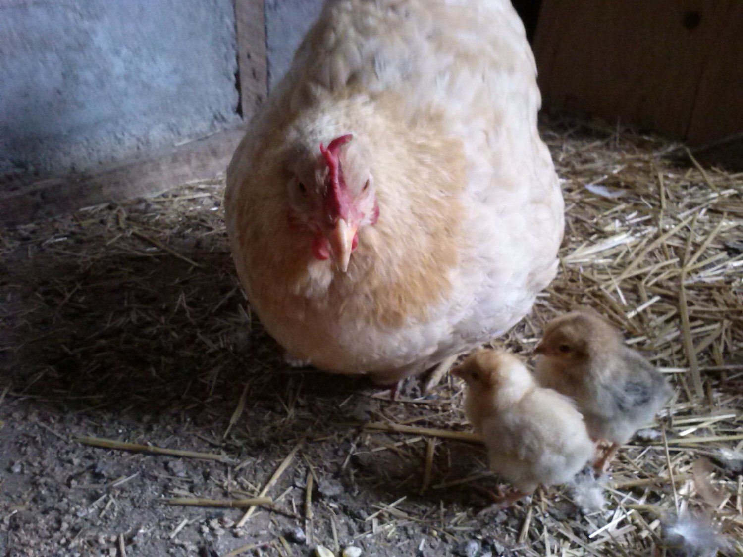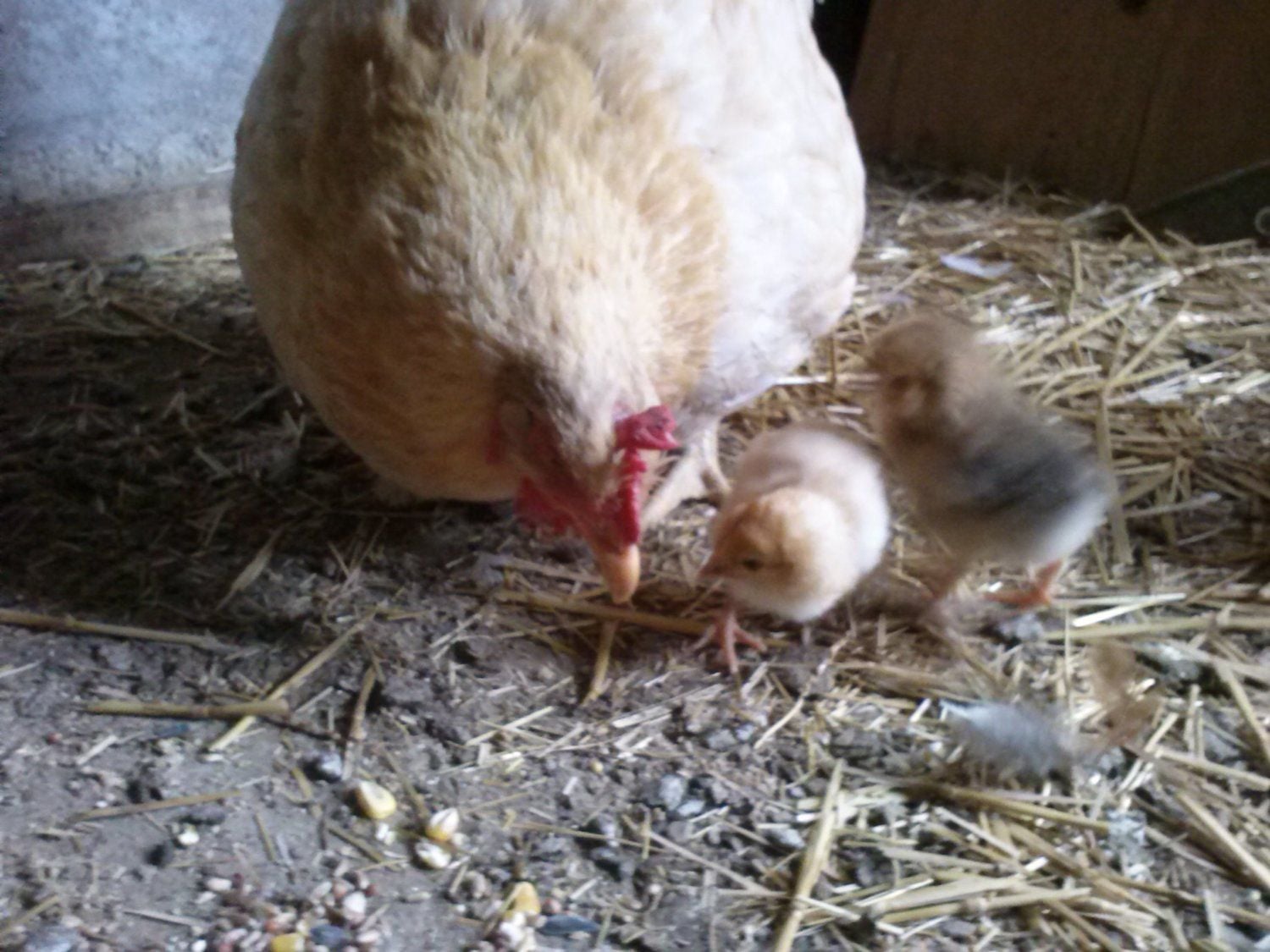Oct 13, 2014 #5,301 TaraBellaBirds Songster 6 Years Joined Jul 13, 2013 Messages 1,975 Reaction score 283 Points 198 Location SW Kansas My broody Rebal Dottie It's too cold out there Mama. Pecking lessons!
