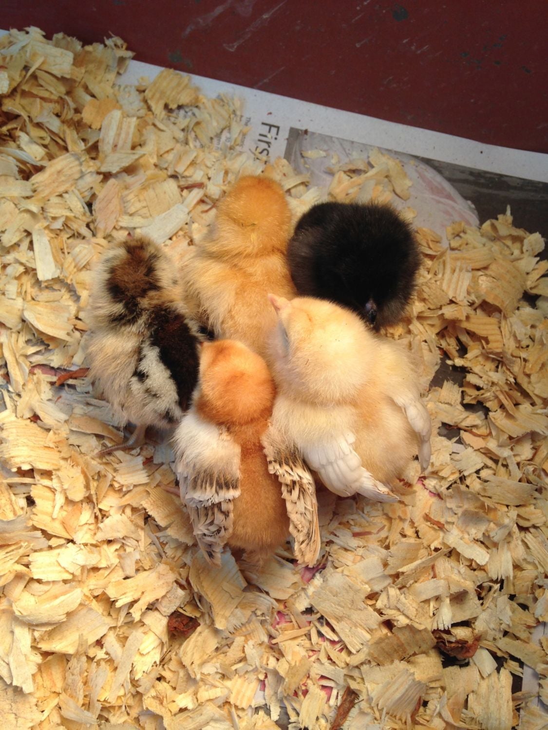 Orpingtons are getting bigger. The big splash chick is 4 weeks old today. The smaller blues are 2-3 weeks old. Crazy how some are feathering in and some are still nothing but fluff.