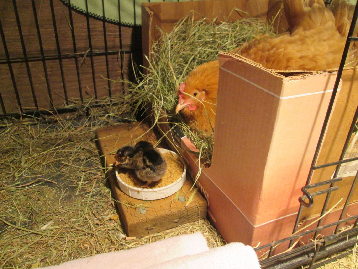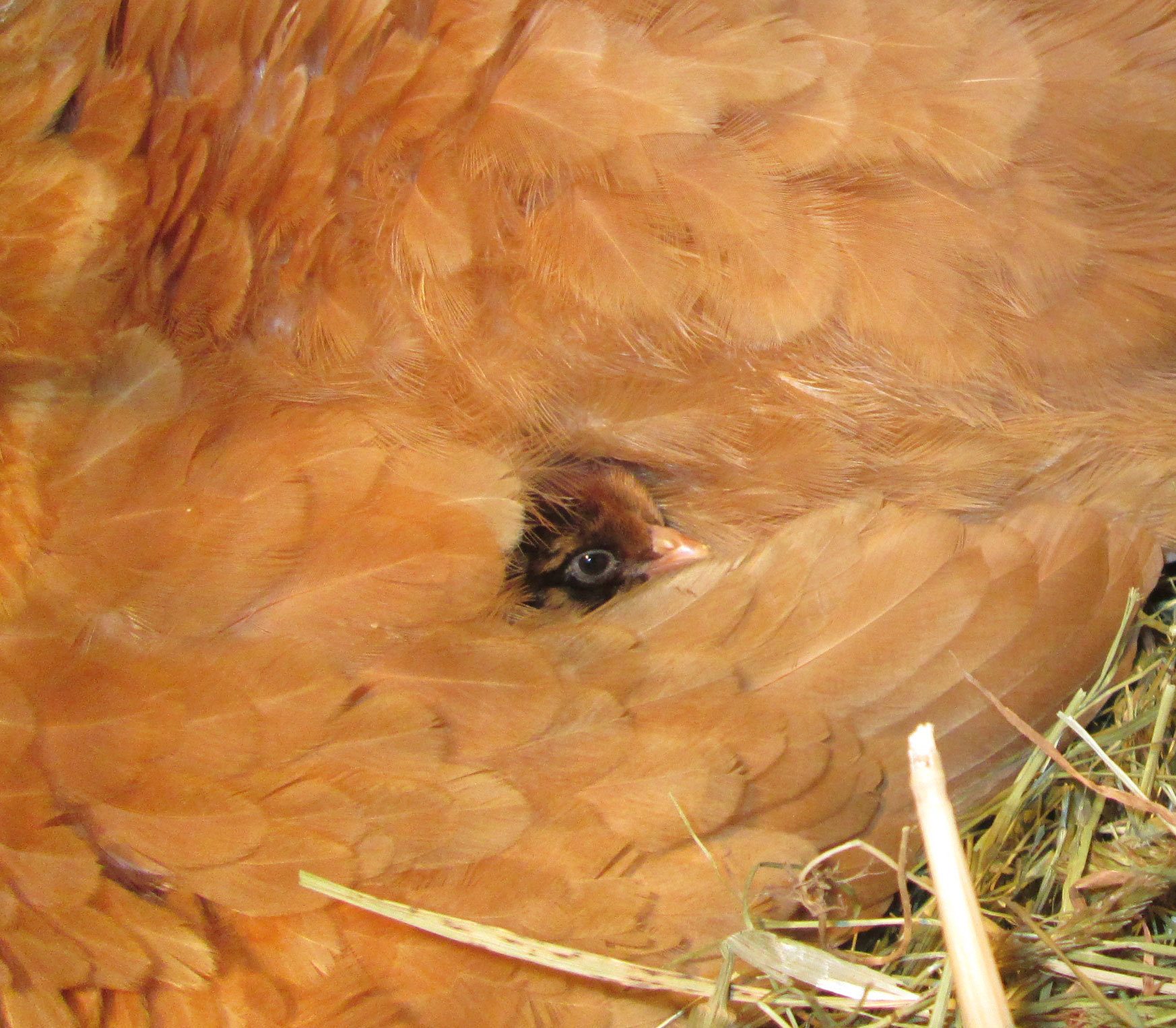 Took this picture this morning... my thread about my broody hen has been in the incubation and hatching section, but as of this morning, we have two healthy chicks so I guess it's time we moved to this forum.