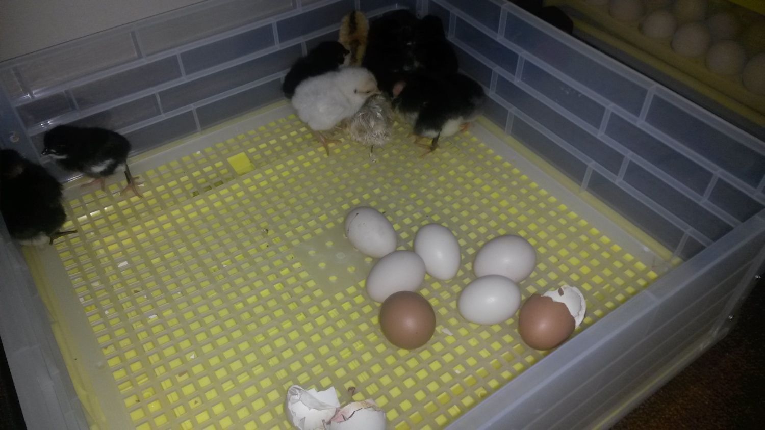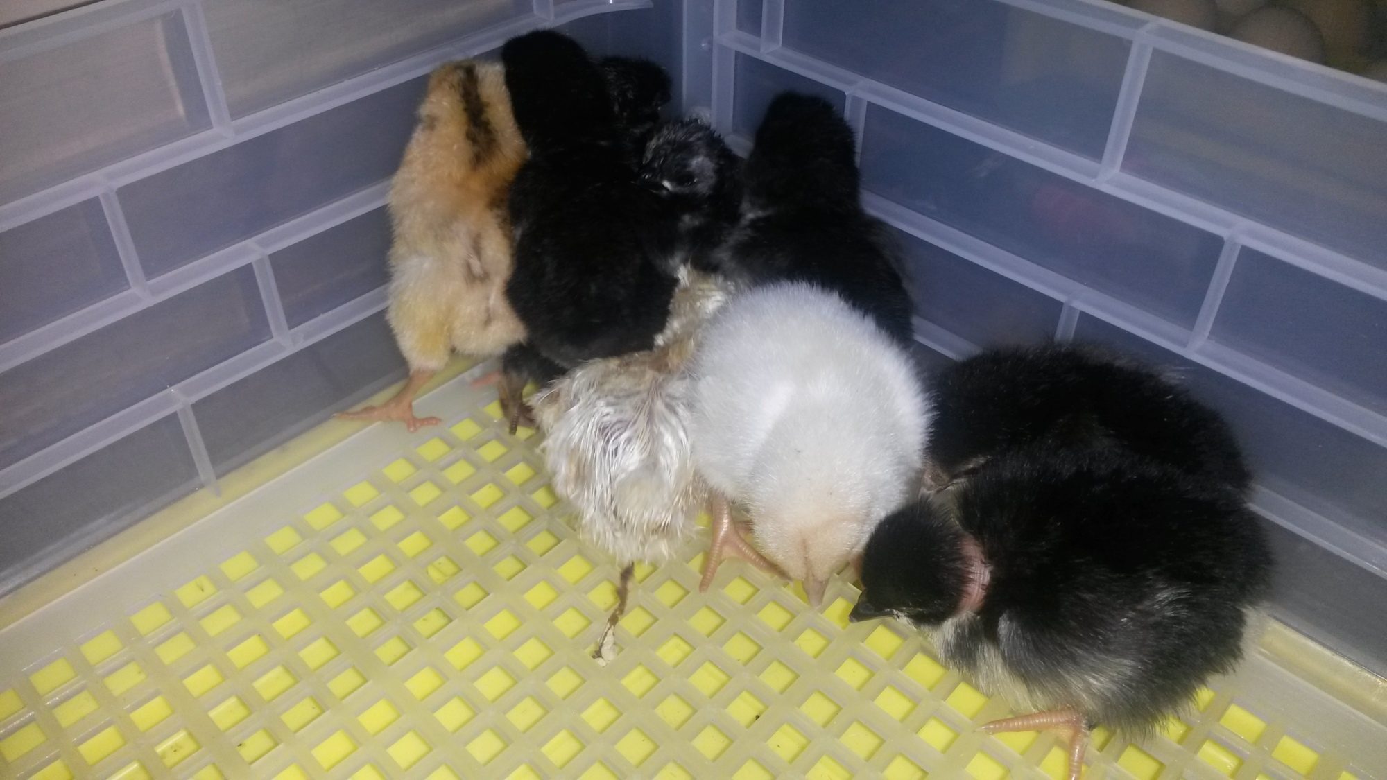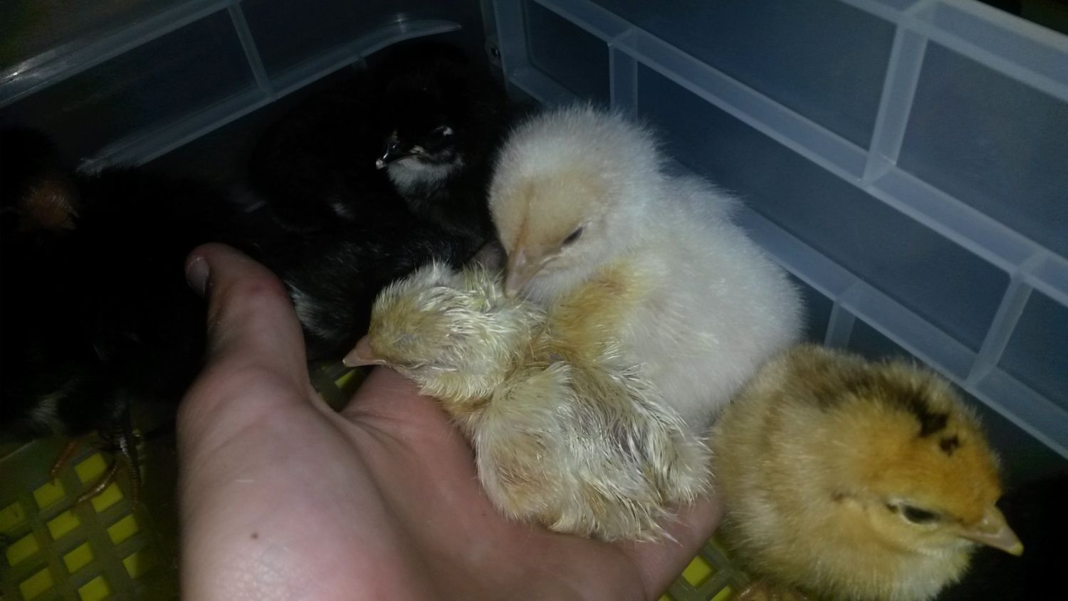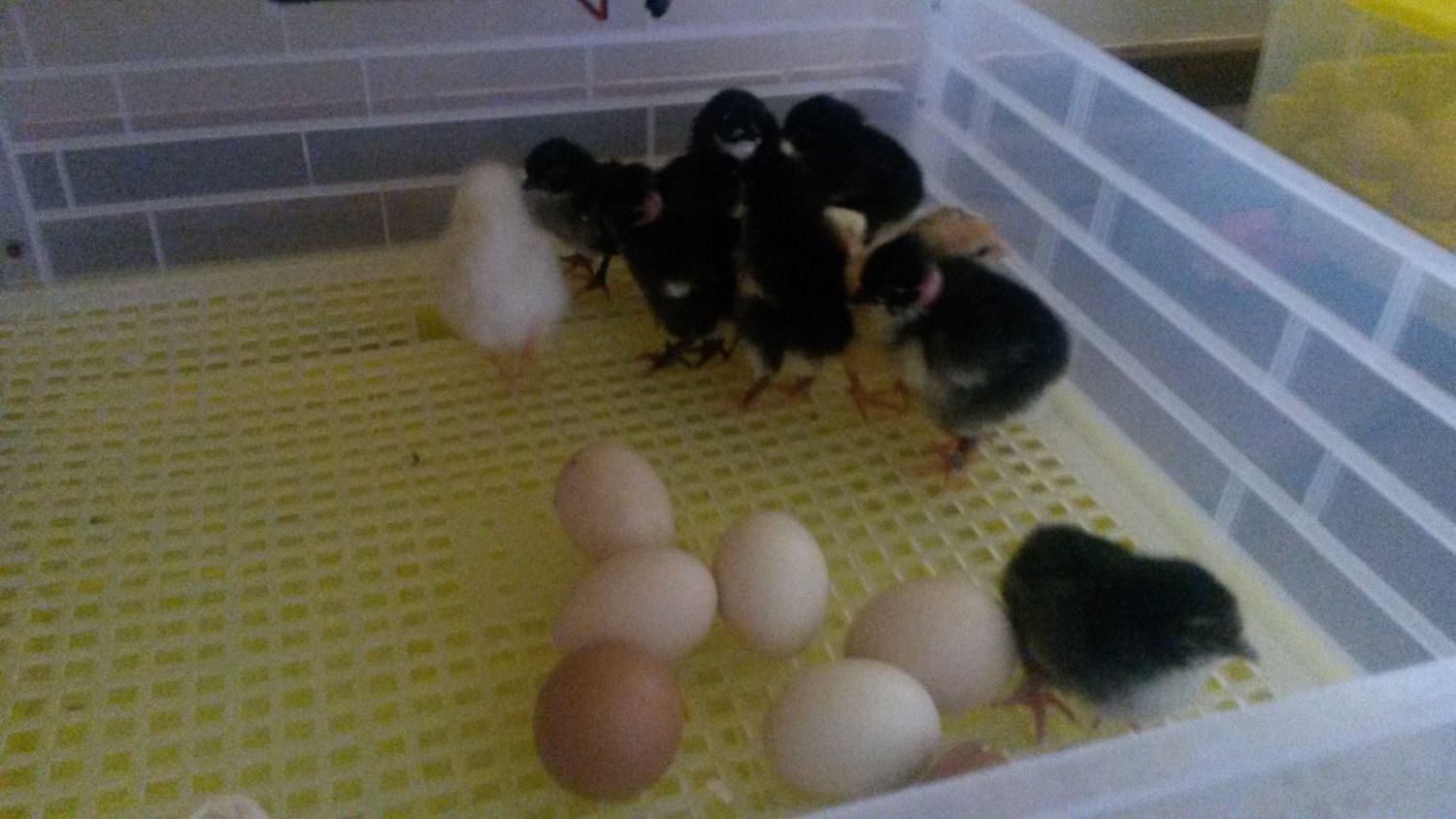 Merry Christmas/Happy Holidays Everybody. We got home after Christmas lunch to and my partner noticed a teeny tiny chick near the canna lillies....upon closer inspection, we found 15 miniature balls of fluff and one very protective Mama Chook. This hen is one of my rebellious ones who never comes in at night, preferring to roost in the trees and on fences so I never took much notice when she wasn't in the pen. Turns out she must have been sittng on a nest under the house. The chicks are just darling; 3 black,2 gold, 8 white, and 2 very pretty grey chicks.![]()