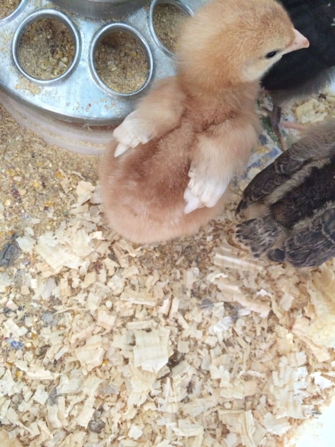. My two gold sex links. Supposed to be pullets but I am wondering if the bigger one is a rooster. It likes to stretch it's neck up and open wide like it's trying to crow. I think they are a little over a week old, perhaps two