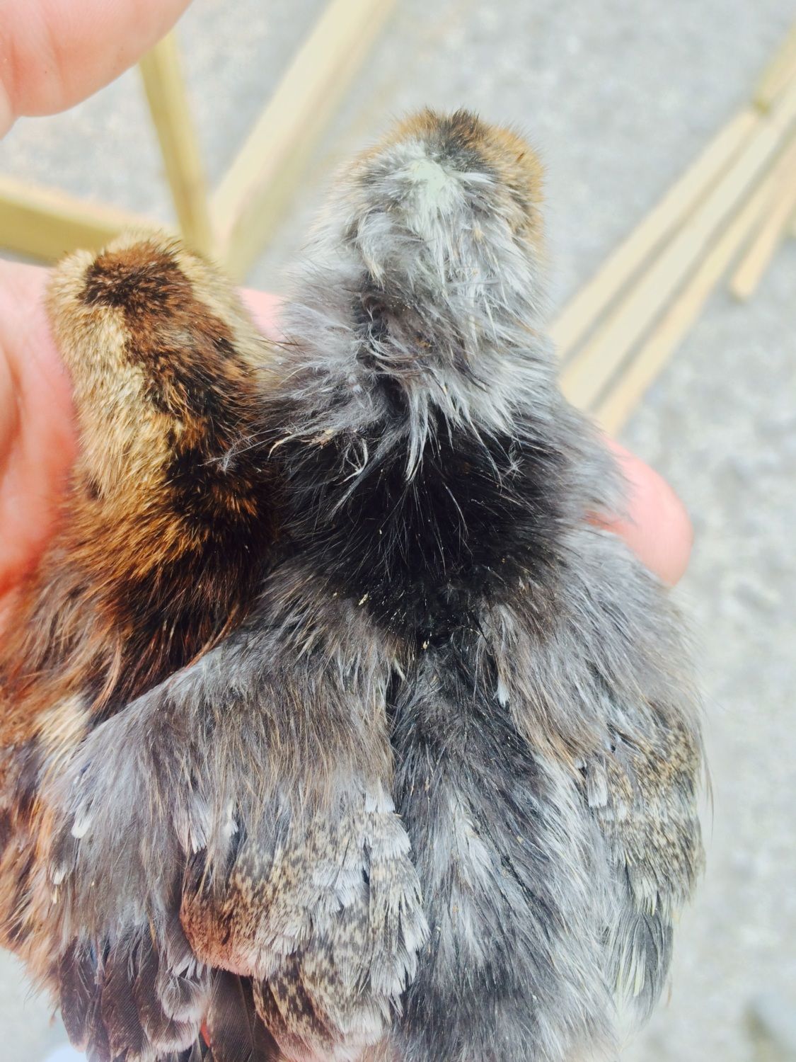 I'm surprised she allowed it to get this close. Normally she would have backed off. She's quite the princess. But this little sebright, about an hour old, went straight to her.@Jophus