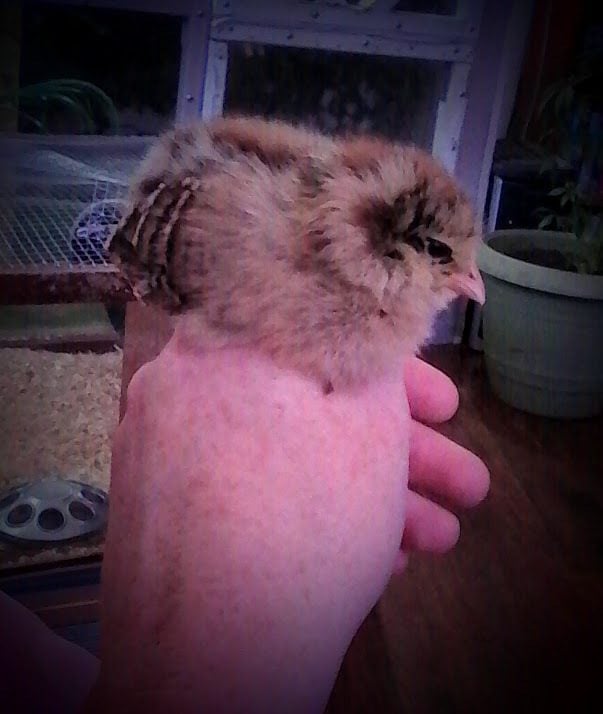 We bought a couple of Ameraucana hens that were previously used for breeding. The first few eggs the laid were fertilized and one of our hens went broody. She destroyed most of the eggs as they were hatching! We managed to save one as it was popping and put it into a home made incubator. We had to help it out of its hell a little but here is the little beaut.