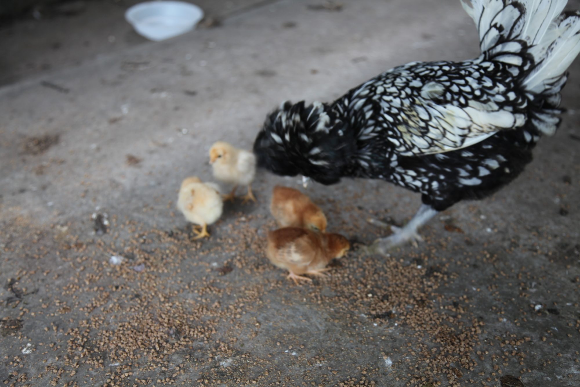 how adorable!! so glad she took them on and is such as good mom!Much to our surprise, one of our Polish crested hens went broody a few weeks ago. We originally tried to give her a clutch of purebred Polish eggs, but a skunk found its way into her nesting box and ate them all about halfway through. Rather than make her start over from scratch, I got her four chicks from the farm store and tucked them under her. She took to them right away, and is turning out to be a great mom.![]()