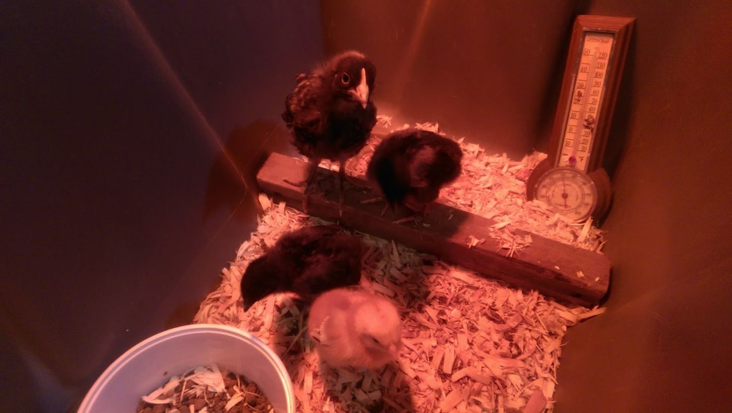 And about the Serama...I read Serama chicks can be any colour, regardless of the parents. Well, my rooster is Light Blue, my hen is Black Breasted Red. BOTH chicks are creme with buff spots??? I'll post pics in a bit!