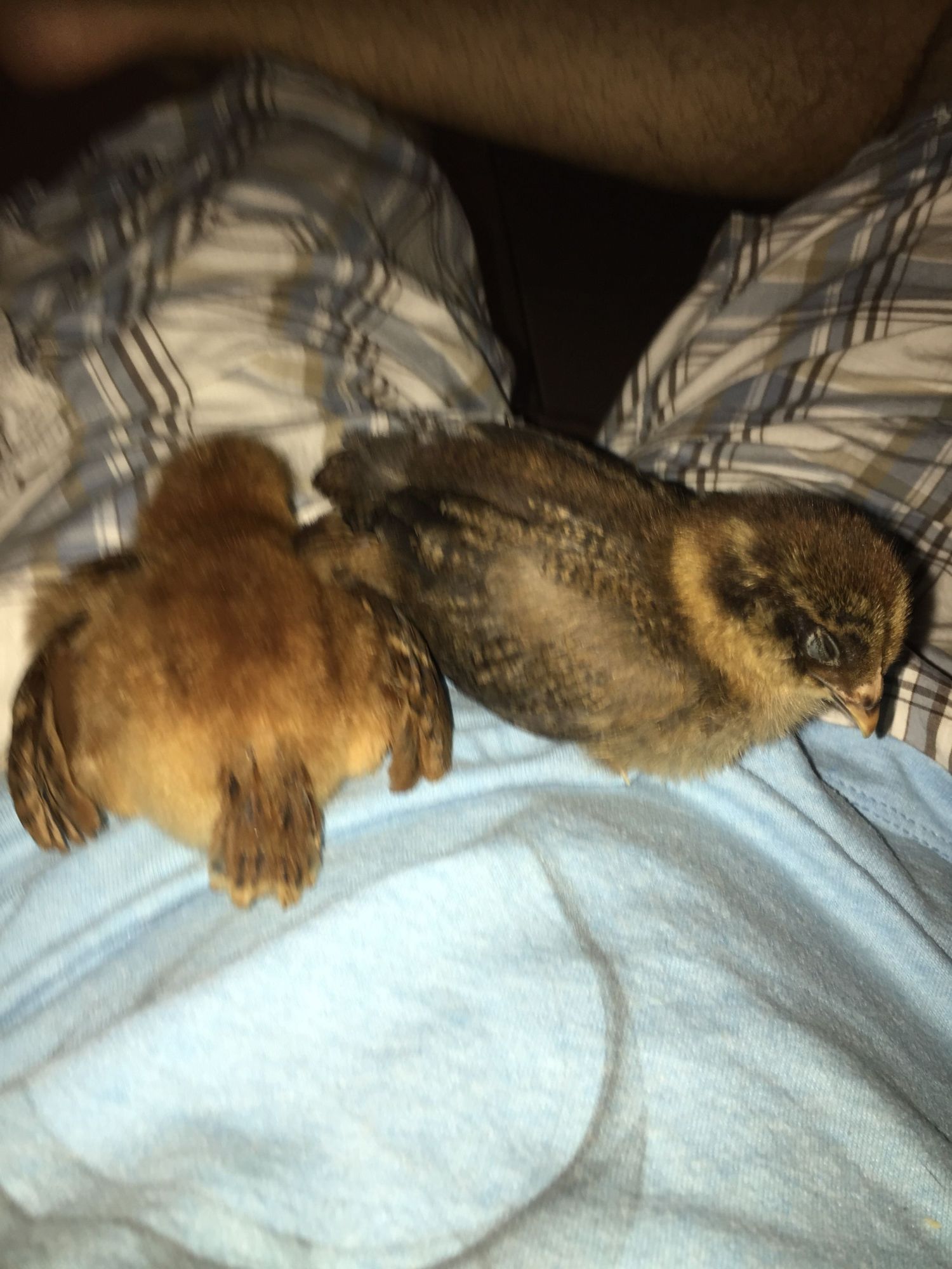 But I put some eggs under a hen, they will be staggered because I was not sure the eggs were even fertile. but here is an early hatcher... mom was coco maran mix, tan egg, dad was a blue frizzle olive egger. 3 pics so you can see his angles...