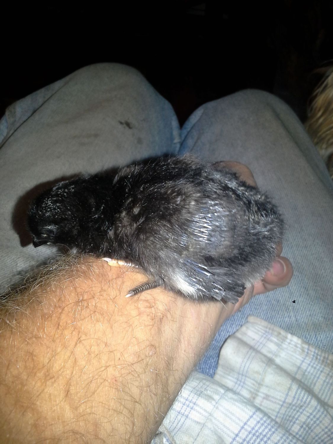 Here's my suspected roo, Slimy Bob being a Serama mamma... Goofy chickens!
