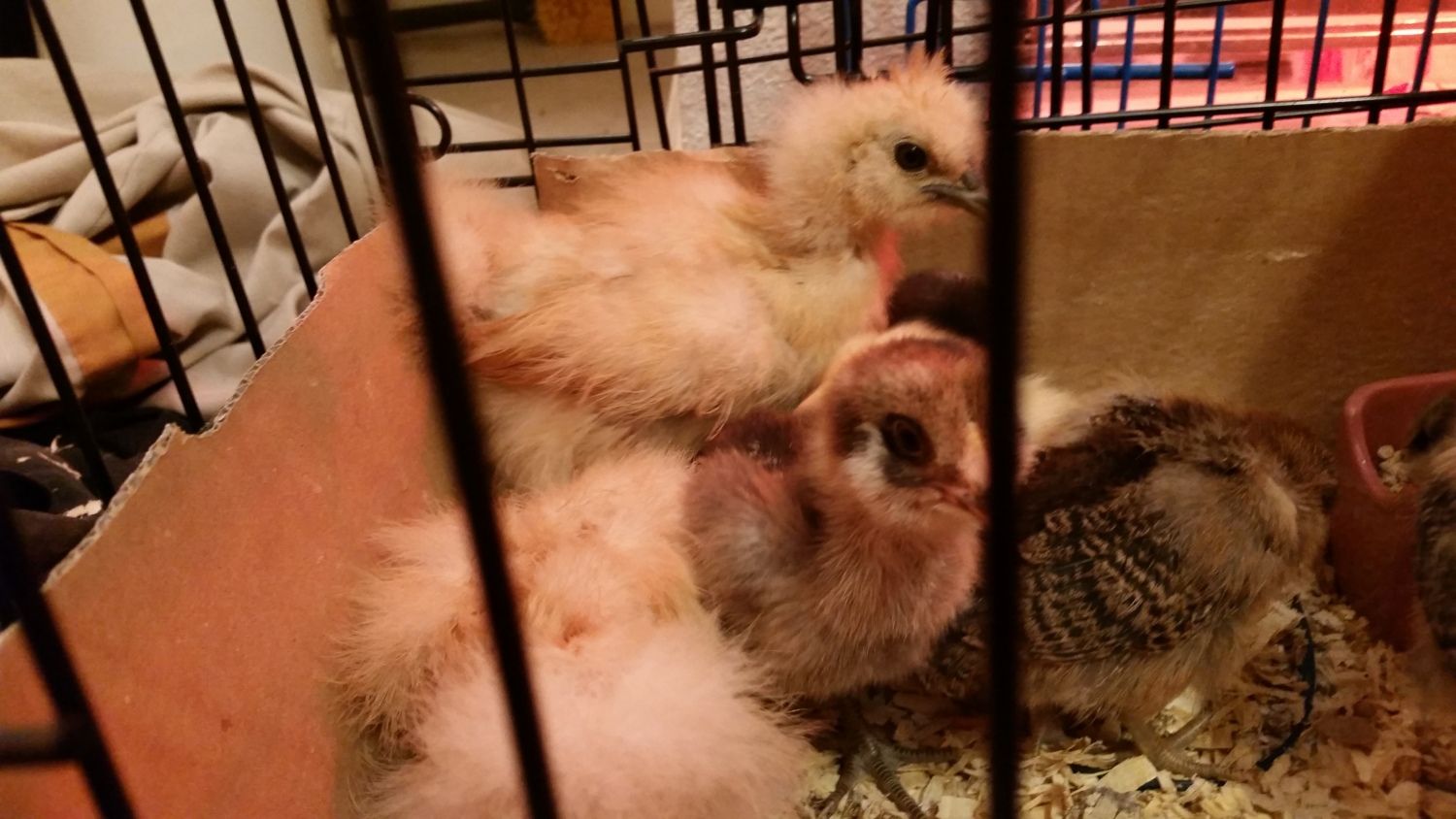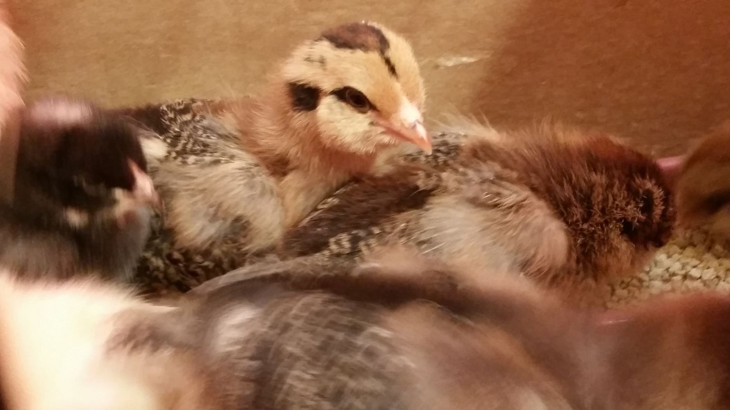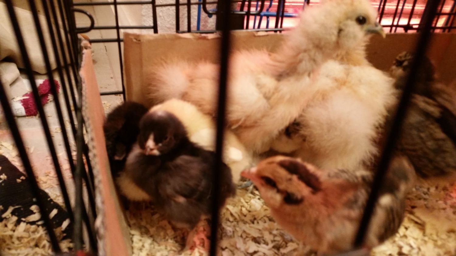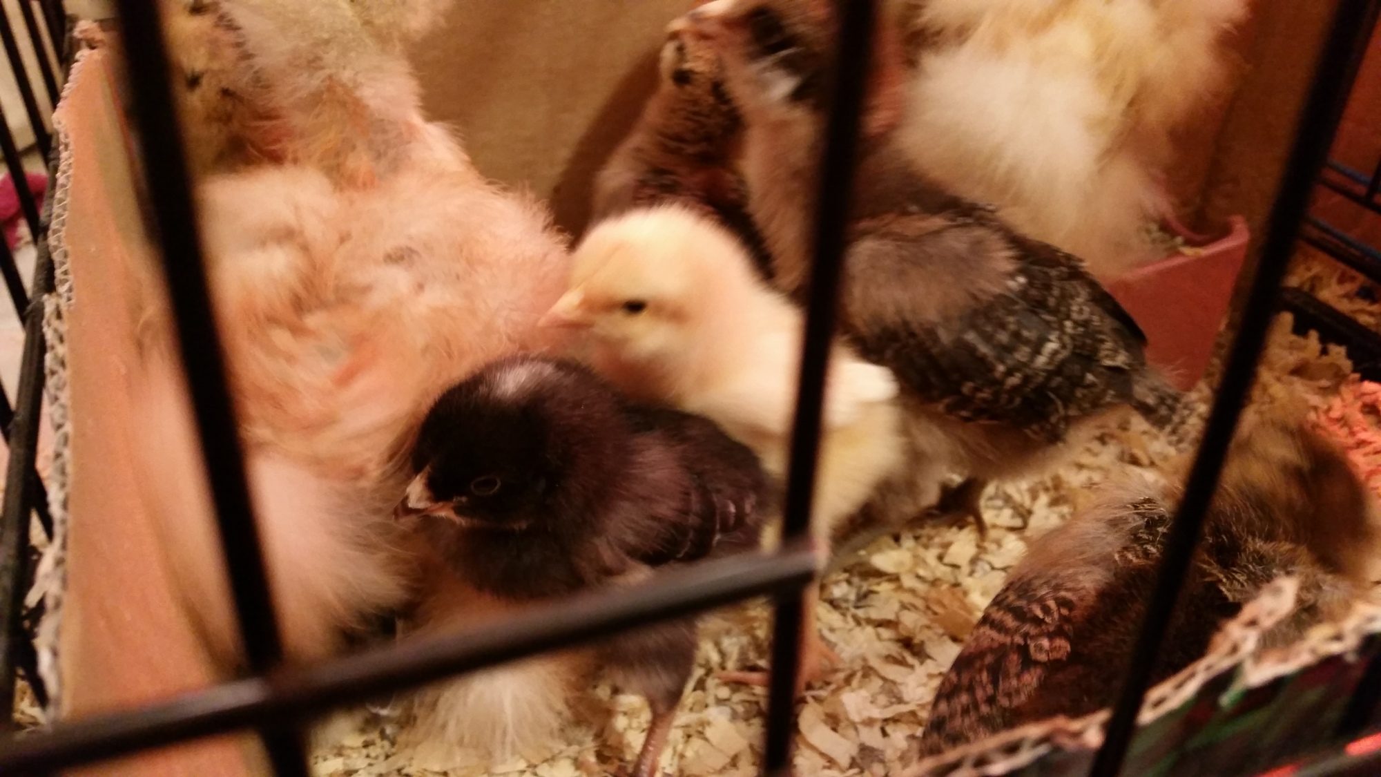 My 4 week-old quail chicks do the same thing every time I lift the lid (Oh, crap! Here she comes-RUN!!!!!!!!!!!!!!!!!)
