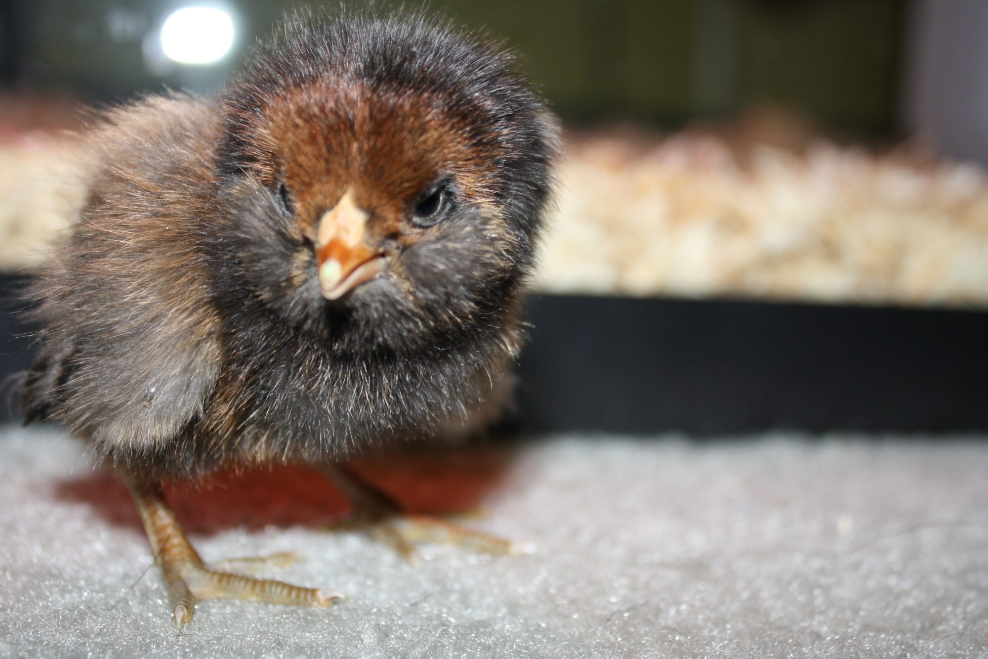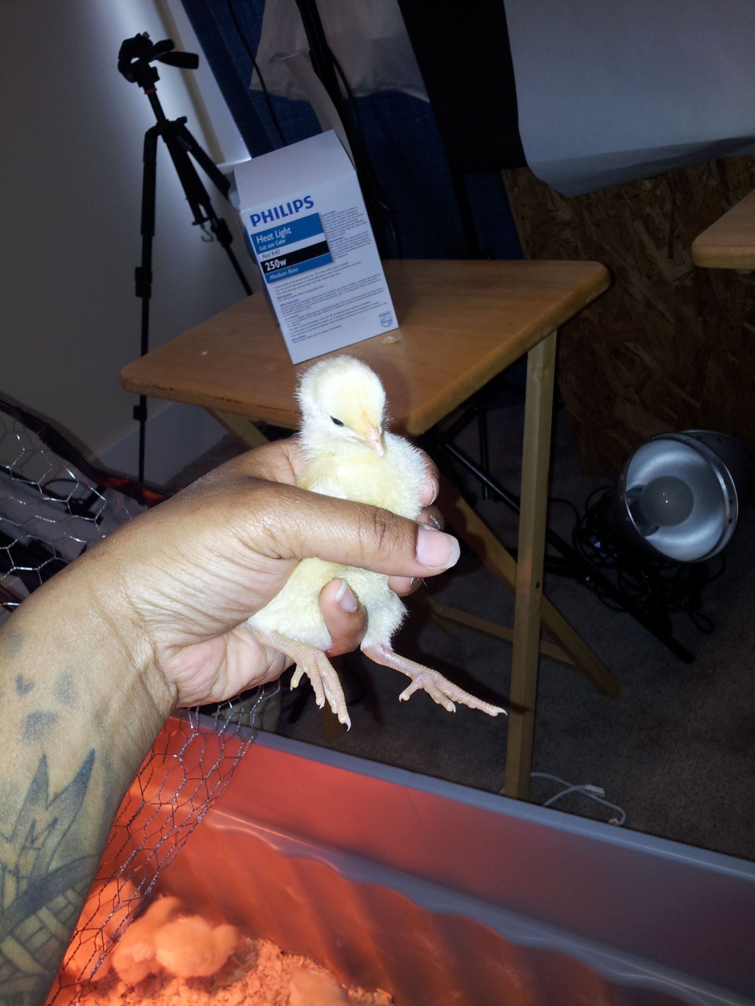 This is Henrietta she is a Rhode Island Red she is 4 days old.