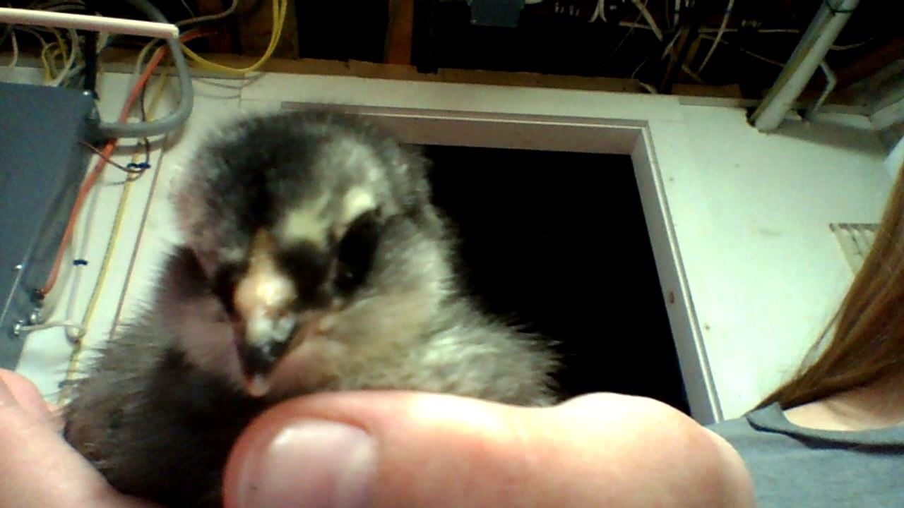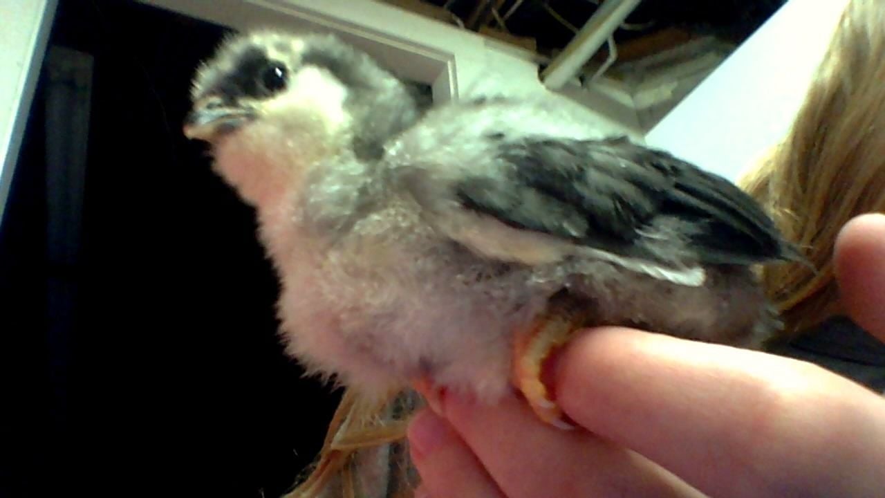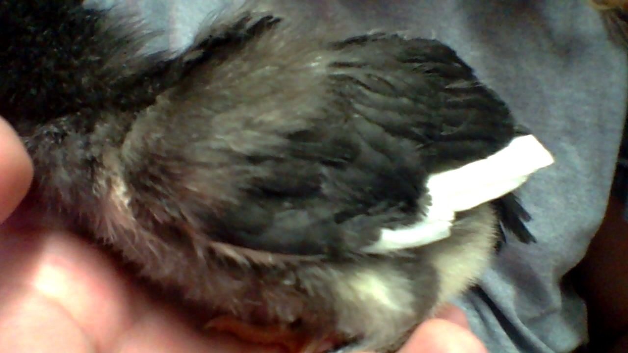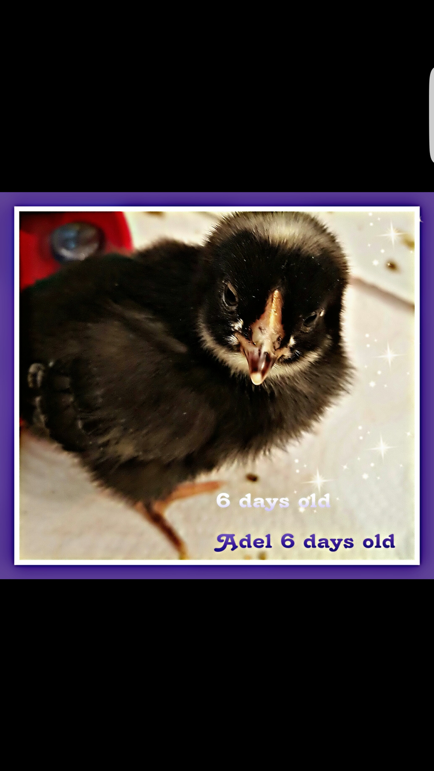 She looks a lot like my black girl, but about the same size with less feather development. It's hard to tell with the black markings on her face if she has a beard or not. If you post some frontal pics, it might be easier to tell. Even some looking down on her head. That might be the best. I included some pictures of two of my girls at 1 wk 3 dys for comparison. Also, where did you get her, and how old is she? From what I see here, if she is a ameraucana, then she has a very small beard for the size she is. In comparison to my 3 girls, I would peg her at about a week, maybe a little under. I also can't see her wings very well, since the focus was on her neck, but that is my estimation of her age.