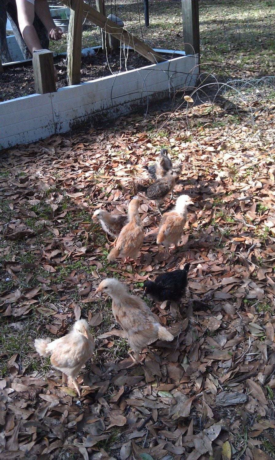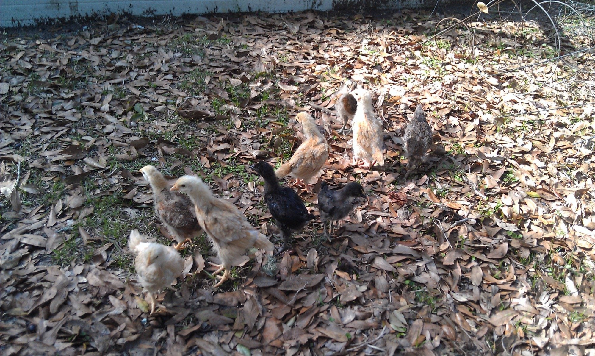 We have 9 one moth old chicks all together... 4 Buff Orpingtons, 2 Black Sex Links, 2 Amerucanas (not sure if they are Easter Eggers or Amerucanas though) and 1 Rhode Island Red