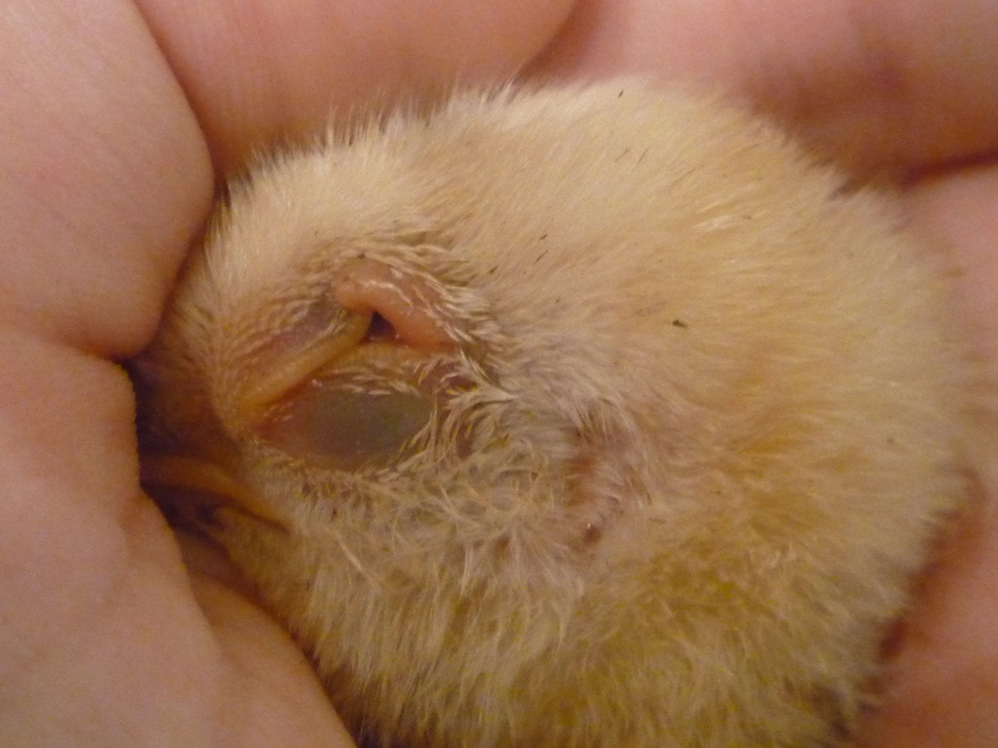 Baby chick with eyelid problem