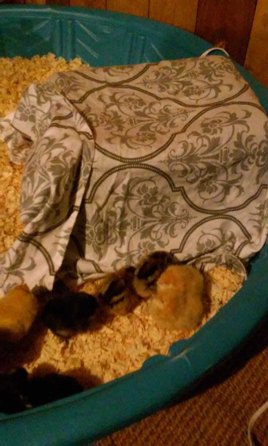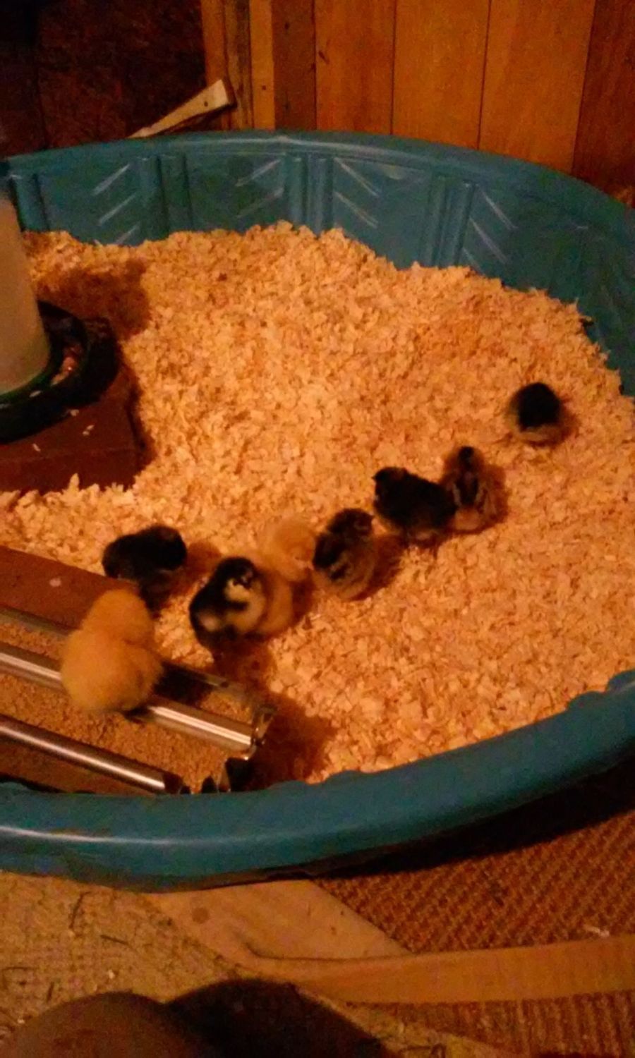 surprisingly they don't really get the water dirty but I will still start changing it everyday. I think it helps that it's a bigger waterer and up on bricks. They don't all drink at once either. They're good about one or two going over when they're thirst and they don't climb up anymore except maybe some of the smaller ones, they just stand on the shavings, dip their beaks in, tilt head back and gulp, go get some.more, etc. Until they're satisfied. The feeder they all rush over and try to eat at once and it's off bricks atm so some shavings getting in lol may put it back on bricks but i did switch to the feeder with the holes in it so that helps and no poo in it, just a couple shavings. I think I will wait a few days to put it back up as some of the chicks are still a bit smaller, especially one barred rock. I will start raking the shavings more often and/or completely change them because I do worry. I'm not sure how dirty very dirty is but I think it constitutes as very dirty atm so I'm changing it today plus I'd rather change it more often (or add shavings on top or rake) than have them get sick so I'll have to work on that. Especially with the limited ventilation. But yeah, the pool is pretty small but I'm hoping to move them to a bigger pool and/or make a bigger area with hardware cloth.