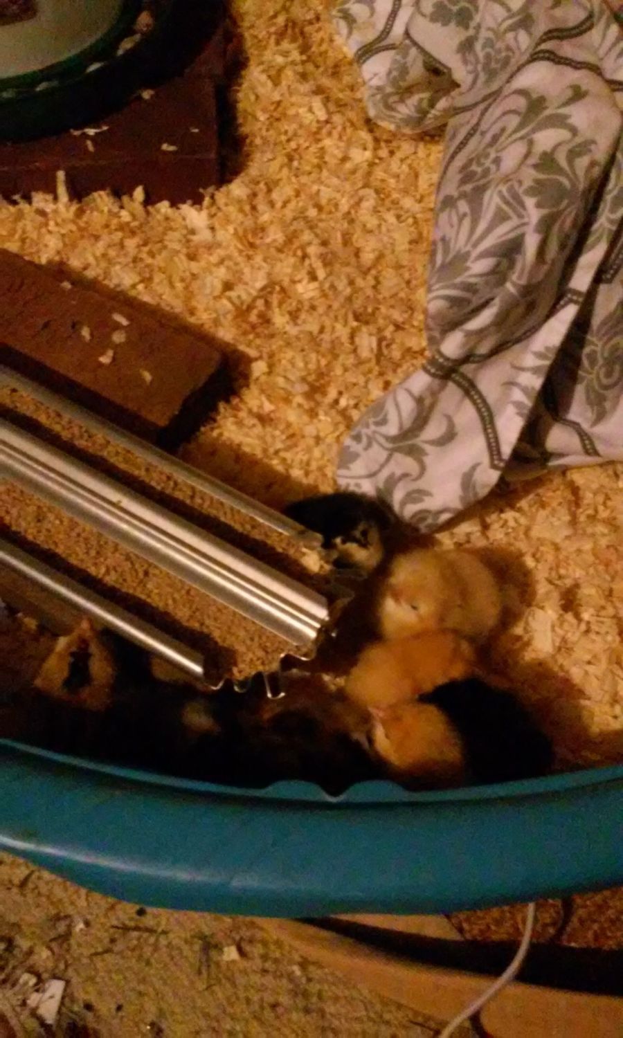 So I just checked the heating pad and good thing because it was off. My mom messed with the breakers last night and I asked her to check the lights and, well, the lights work but I completely forgot that it would sort of "reset" the socket and I'd have to turn it on again so I don't know if it was off all night or just this morning or what.... But poor chickies were curled next to it wondering why it was now cold BUT they did eat and drink and stuff, like they were still pretty active, not freezing, and it's pretty warm today, so that's good. Poor chickies. Also I'm 100% making the frame today. I know I said that yesterday and it needs to get done but at this point I'm not really putting it off, now it's just stuff gets in the way. Like for example, yesterday we ended up being gone all day (unexpected) and by the time we got back it was dark and day before that it was raining and this thing can't be unrolled inside. BUT. We did manage to get all of the stuff yesterday and today is gorgeous so I see no reason why it shouldn't get done today. although I am taking the bus just down the street to get more shavings. I need hardware cloth so we can put them back in the garage but not enough money so that will have to wait. Speaking of which, how often am I supposed to clean the thing? Because starting I think yesterday? Or the night before? They now poop SO much. they didn't at first but do now. I heard every week? But that doesn't seem enough because there's so much? Am I maybe supposed to be raking the shavings so the poop gets mixed in/there's cleaner ones on top then full clean every week or something? The shavings are also more compacted now and not fluffy. And water is daily or every other day right? Water wasn't too dirty and they drink from the ground instead of climbing in so haven't changed it yet but I think I will today and add the vita stuff if I can finx it (hopefully it wasn't accidentally thrown out). But I just... I feel like I should rake the shavings? Or scoop the poop out? Or just do a full clean much more often? Or maybe just get a bigger area for them? I don't want them to get sick but I need to figure something out and/or also find a rake or something so I can at least move the shavings around. I feel like I'm terrible at this