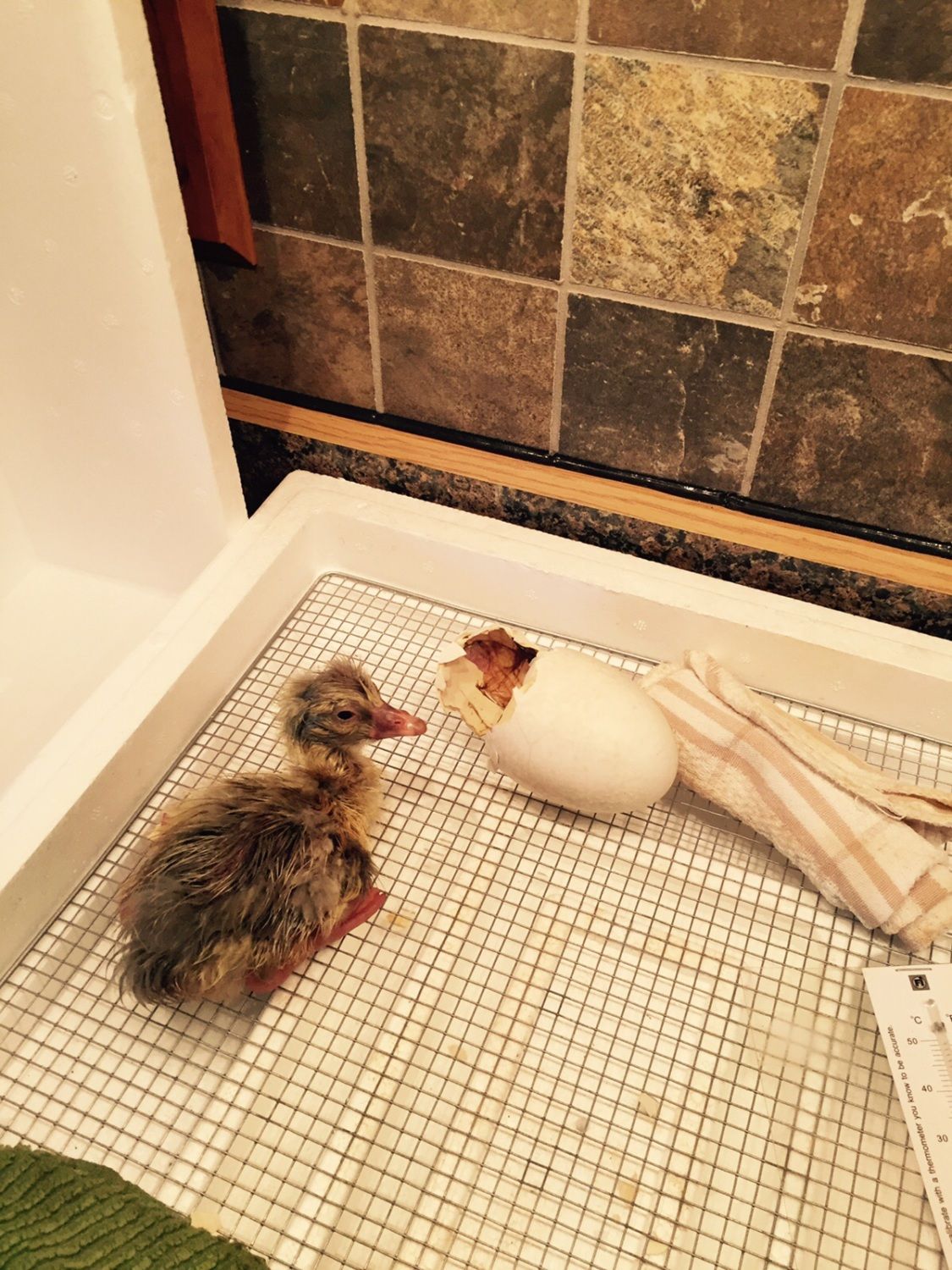 Well hopefully by the time your home there will have been lots of progress made. I know it is so hard not to help but like 8 said give it till tonight.Good morning Lydia, the hole is a bit bigger, the little gosling peeps a lot, especially when I cheer him on. Egg wiggles a lot. I have the humidity maintained and I left some music playing when I left for work. It's killing me but my sweet husband will check on him today. I have been praying ALOT! It's so hard to watch and listen.