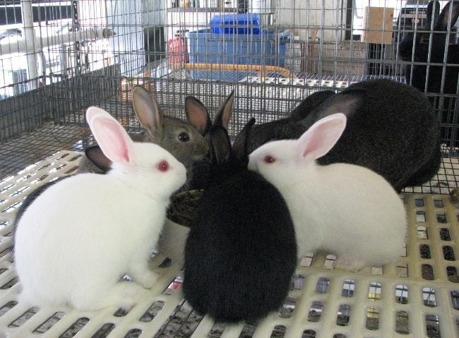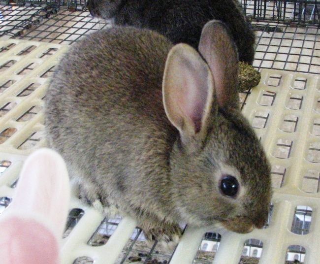 Here's the mamma, chowing down with her month-old, Florida White/Havana mix kits.
