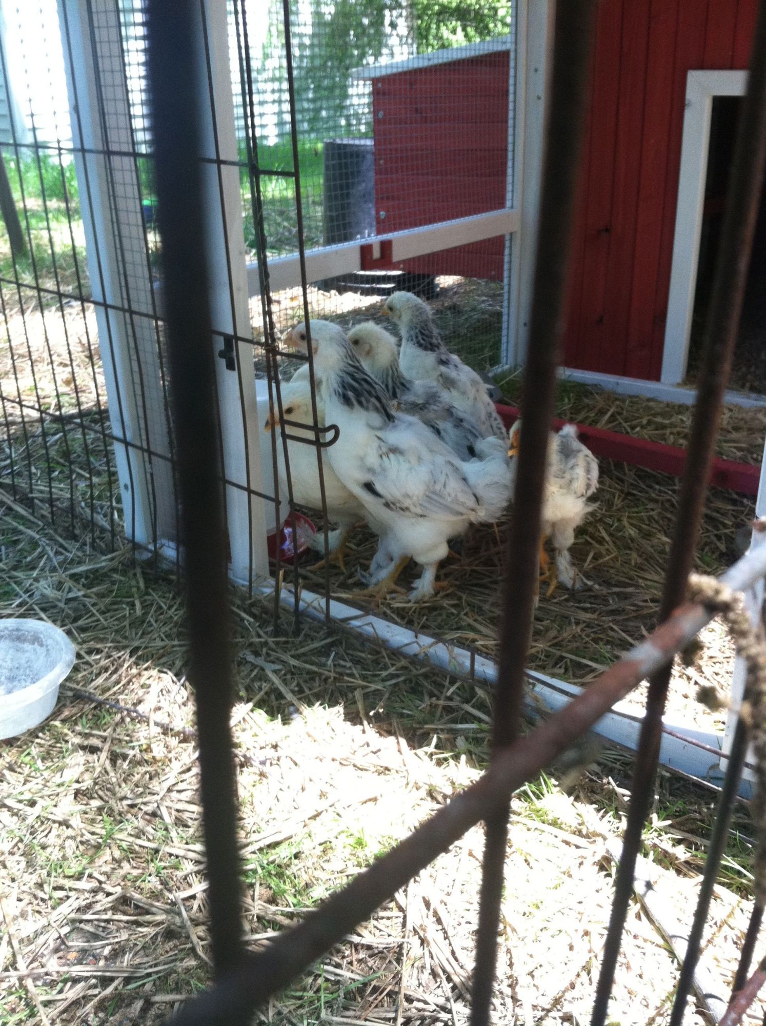 The chicks did so well their first night outside. They didn't sleep in the coop, but I figured they'll get the hang of it soon enough. We pushed the pen we were using to hold them up against the door of the run that is attached to the coop to make a bigger run. The box that came with this coop said it was sufficient for 6 chickens! While I suppose that *could* be true, it is t enough for how I want MY chickens to live. We have plenty of room in the backyard for them to have a nice setup, so we are just making do with the smaller until we can build the one we like. I want to try to get some better photos on here or on the guessing board so everyone can hazard a guess about what sexes I have. I may try to give a go at having a roo, but I'm not committing myself to anything. I want to have at least 5 layers, so I can afford to lose 1 bird to "rooism" so to speak. Here are some more pics: