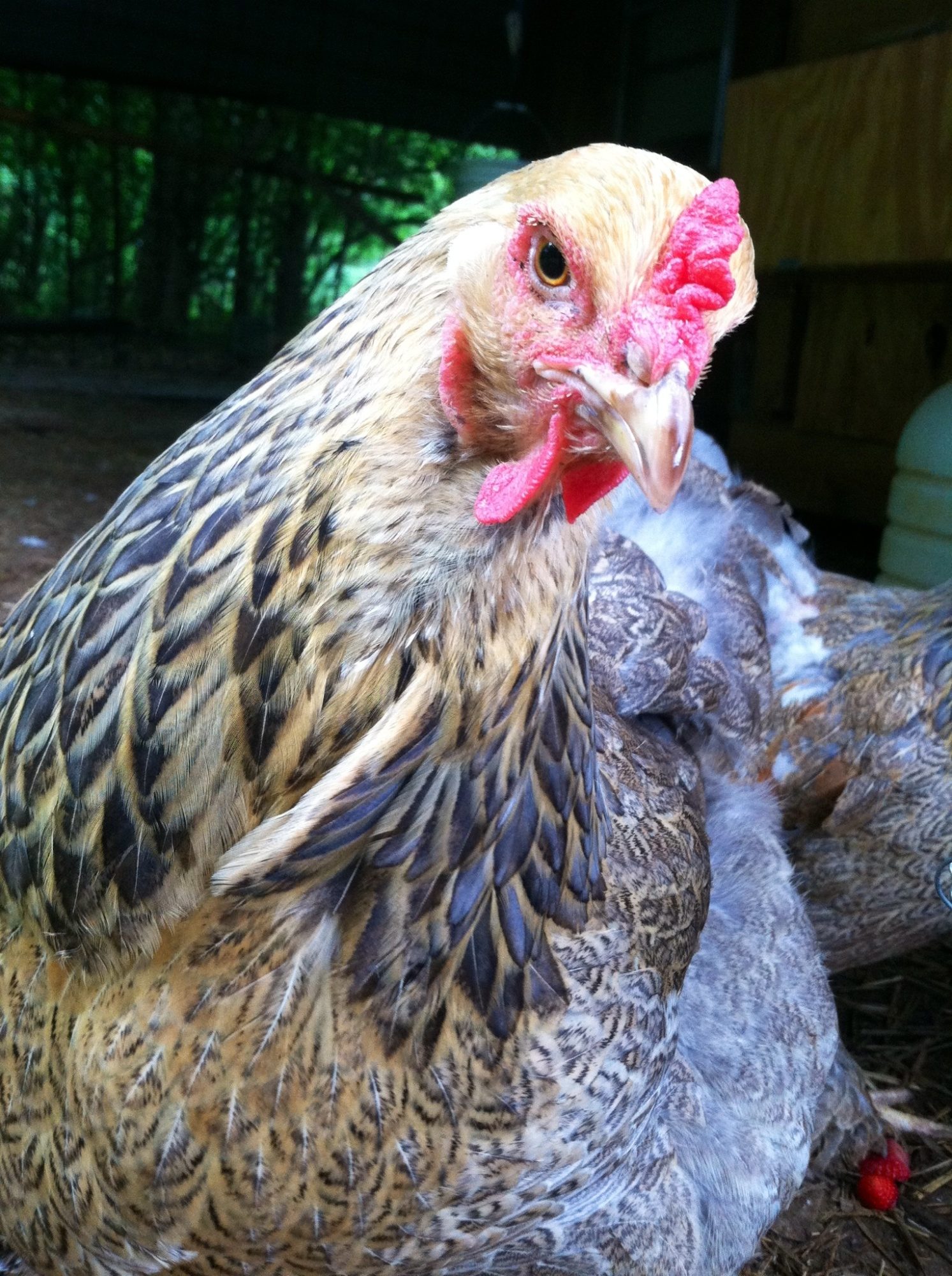 And nosy blue girl (both girls have some crazy molt thing going on but are still laying strong. :idunno