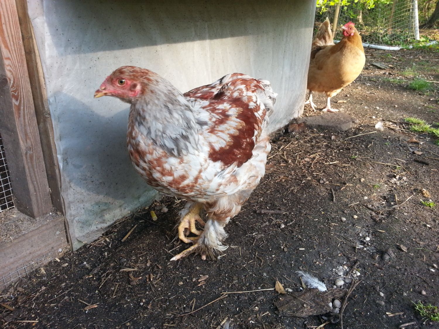 One thing that catches my eye, is the way her primary wing feathers lay, especially evident in that overhead shot. Her right wing looks to be worse, but the left is not good either. I believe I would be hesitant to breed her for fear of promoting that fault in your flock. Sorry.