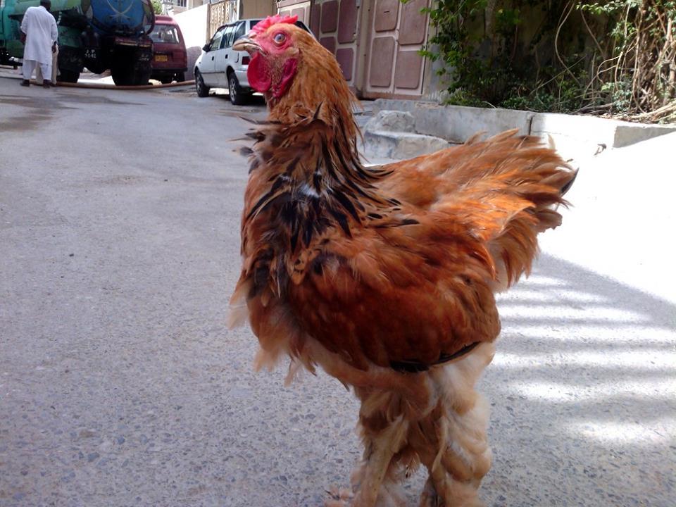 Are you sure he is a rooster? I'm thinking hen. I couldn't see any saddle feathers.