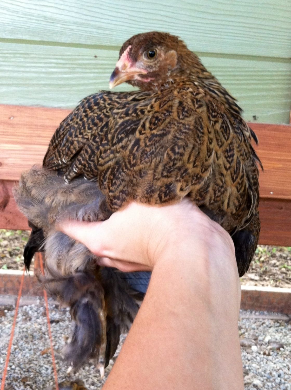 Here is what the "gold" pullet is looking like. I don't believe her pattern is correct at all, although she's way closer than the "blue" ones. Pretty little thing, though