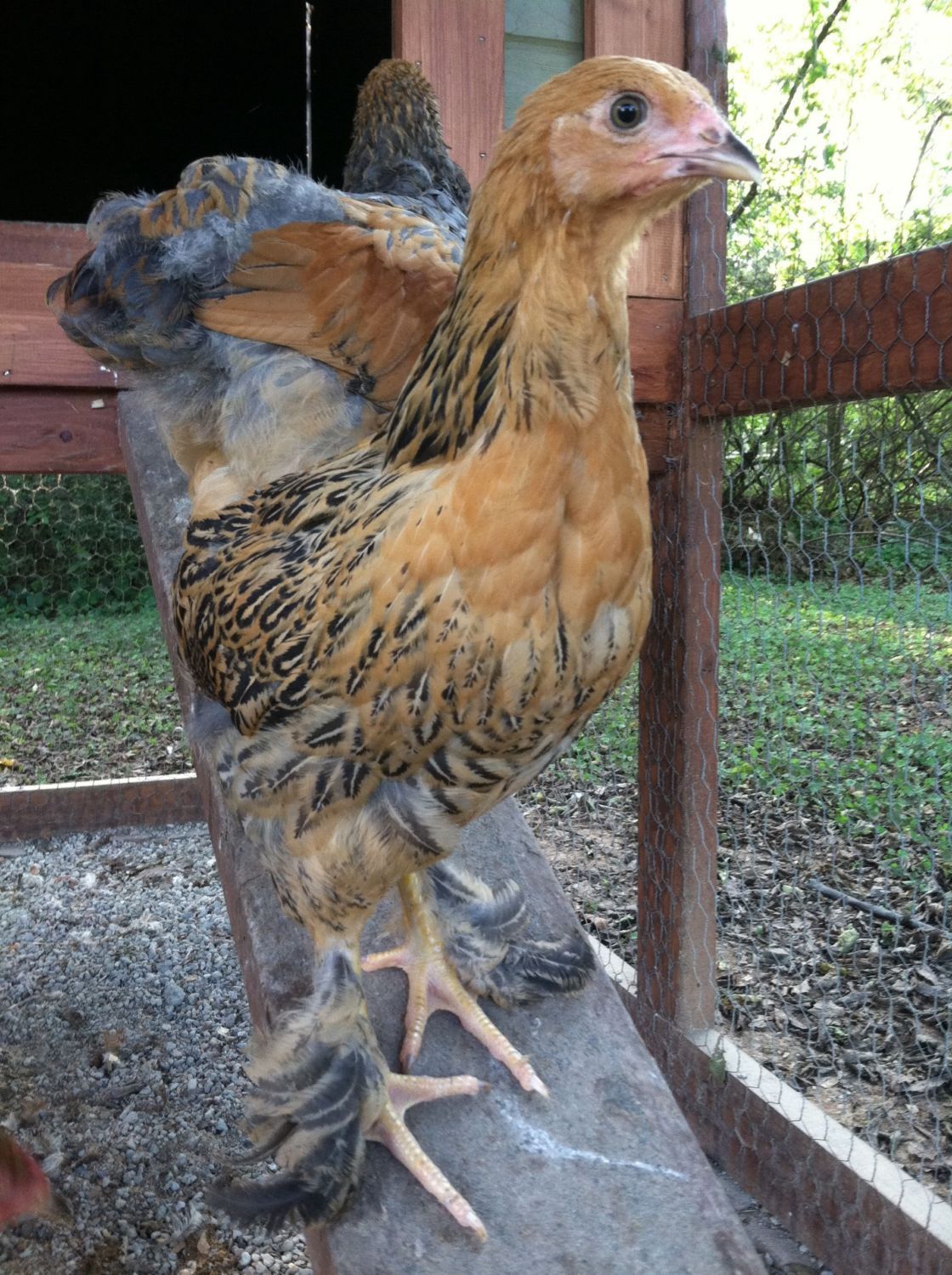 And then I have two cockerels that look like this. LOVE their middle toe feathering, but no coloring like a partridge cock I've seen.
