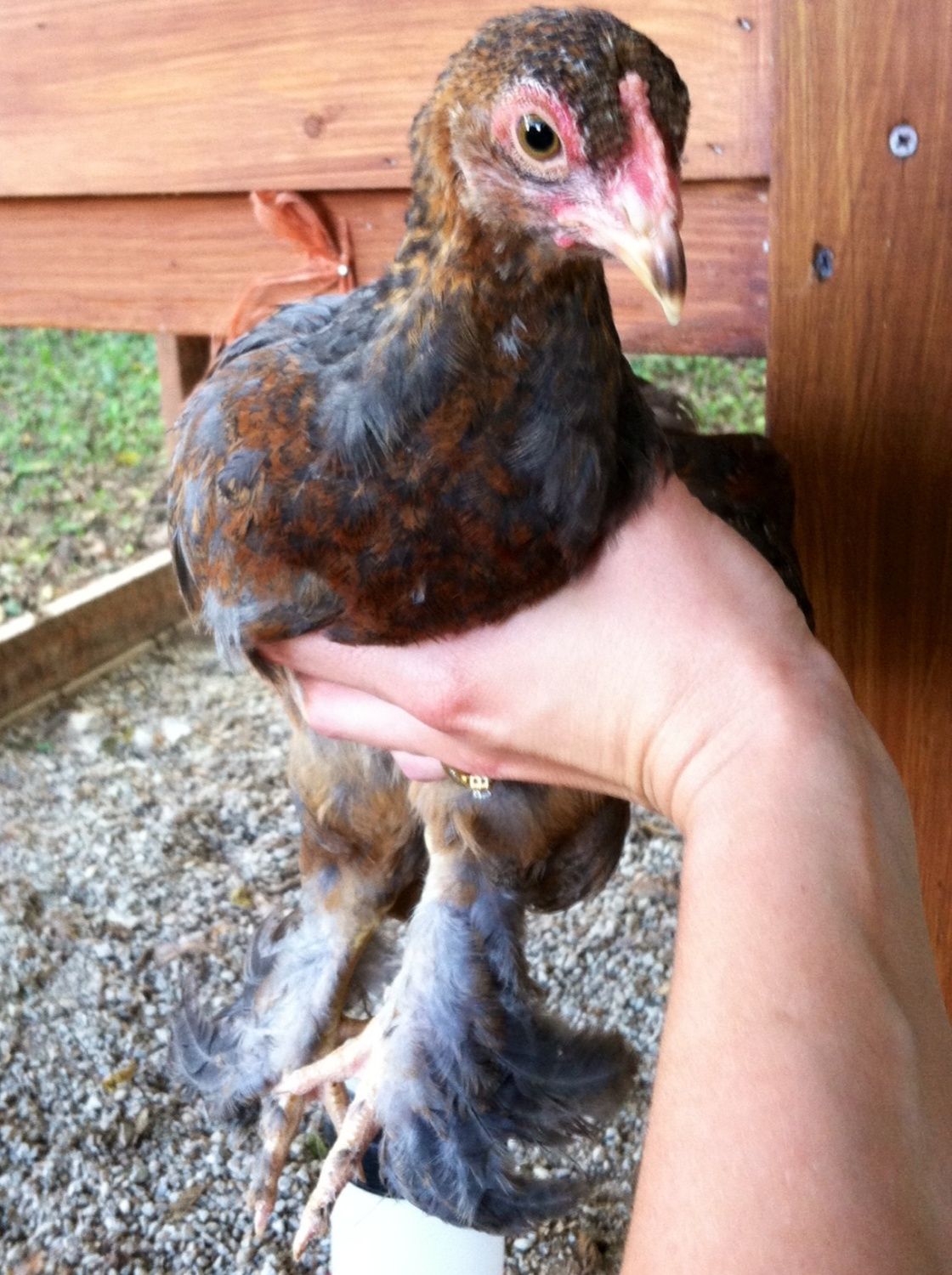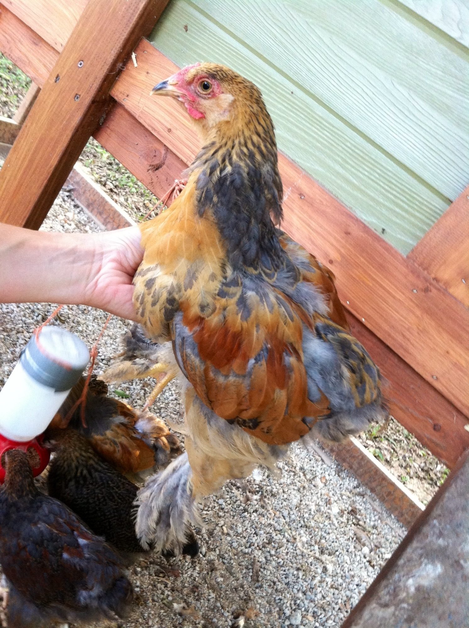 And then here's the confused one.. Bigger comb than the girls, but nowhere near the wattles of the boys.. And colored like neither.