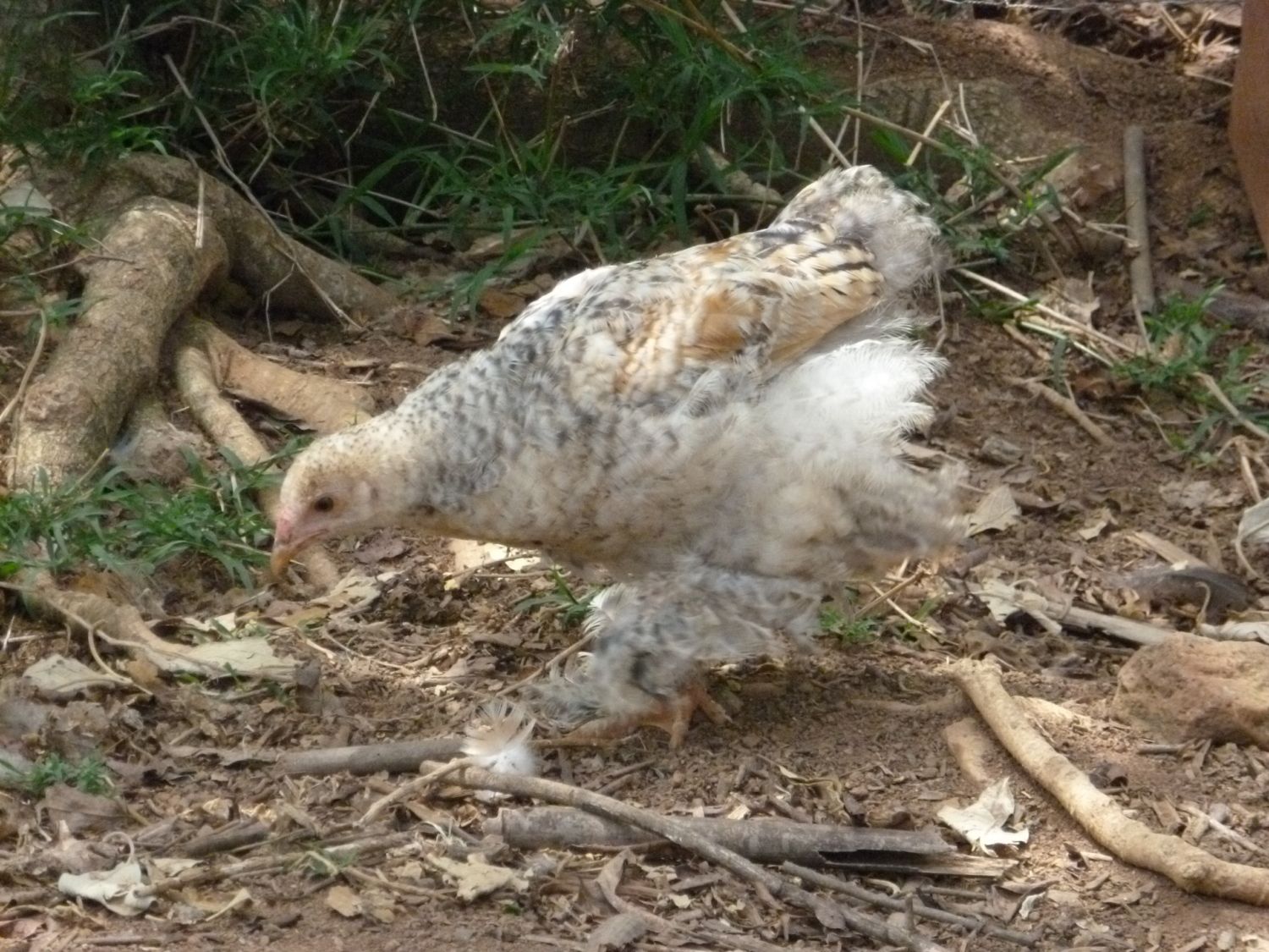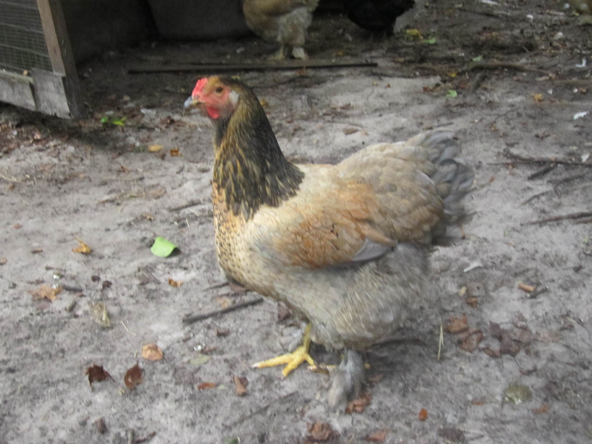 An interesting color. Daddy is a partridge Brahma, Mama is a blue Brahma. I'm not trying to create a new color, just wanted to hatch some chicks so gathered eggs one day and put them in the incubator. I think she's a beauty! She looks to be very close to laying age, so I'll probably hatch some of her chicks just for fun.