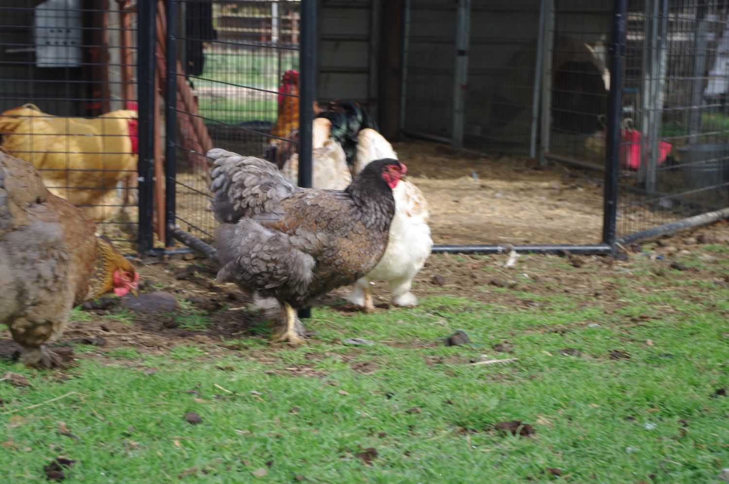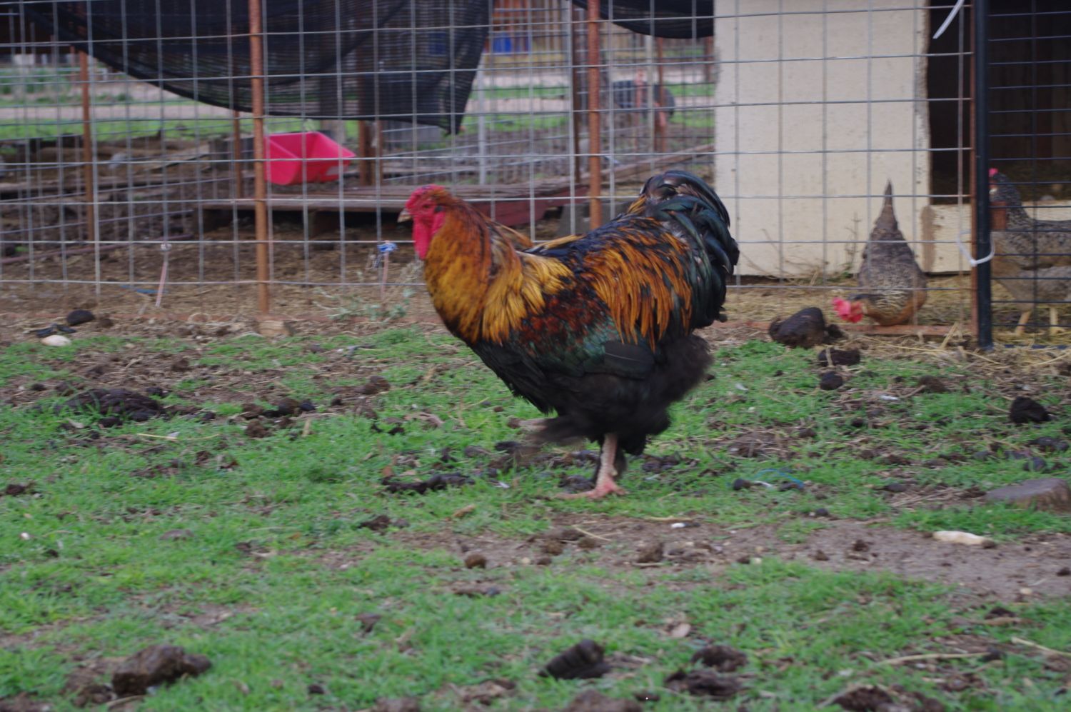 Cute pics from yesterday.. We moved the laying boxes from their original too-high location (originally planned a ladder but changed my mind) to lower level. Big Boy cracked me UP.. He got that big hiney in there juuust a talkin' to his ladies..