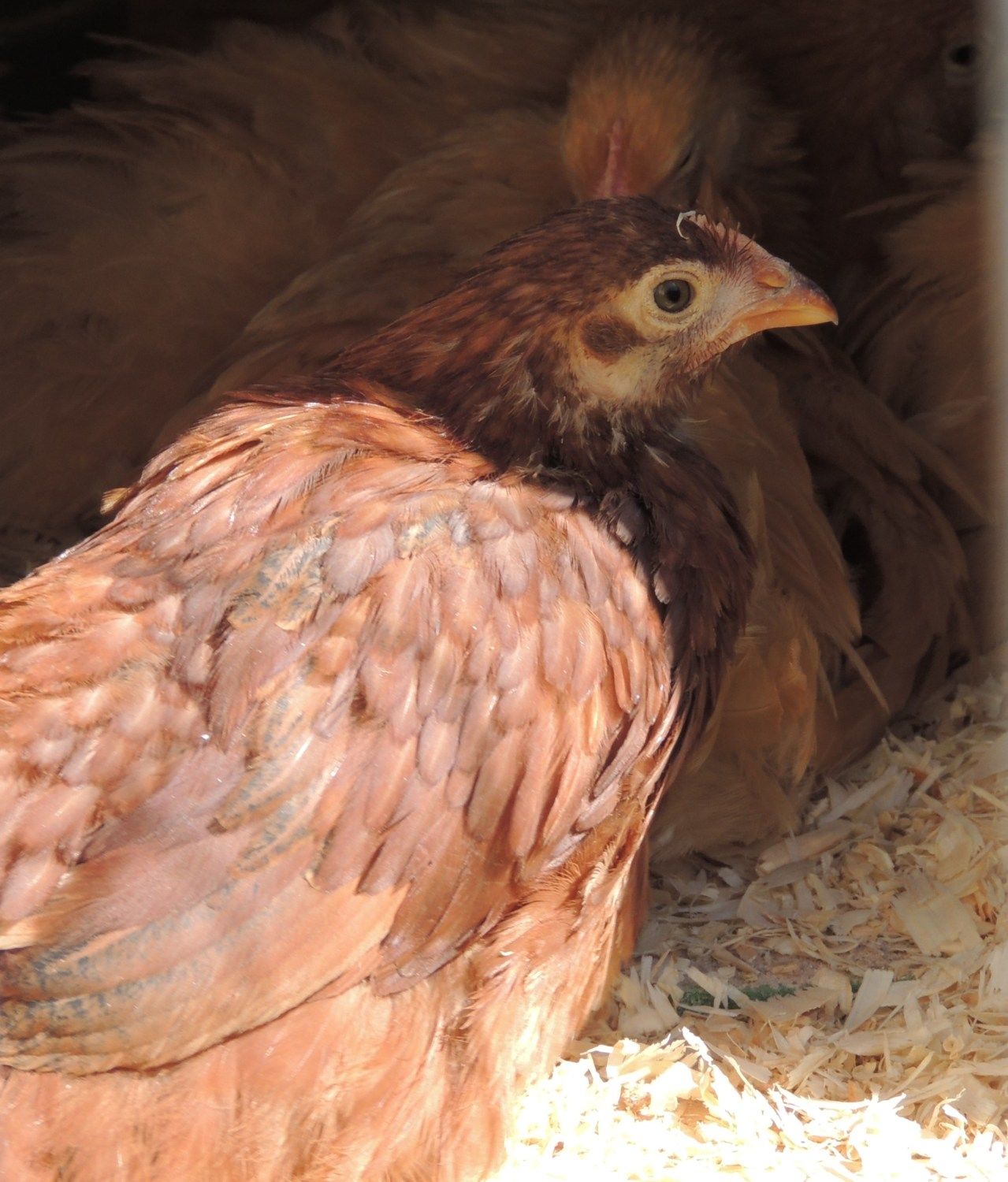 @21hens-incharge The little gray one that you're asking about is the same one that Speckled Hen asked about too....I have 4 of them and they were almost identical as chicks, and still are. So I just chose one at random, taken the day before yesterday, since they all look pretty much alike. That's it right above this. The one with the golden head you aske about is an Easter Egger, and indeed, the one on the roost with the RIRs (aka Buff Bald-foooted Brahmas) is a Red Star - I have 3 of those. The only ones that stumped me were those pesky dark red ones.