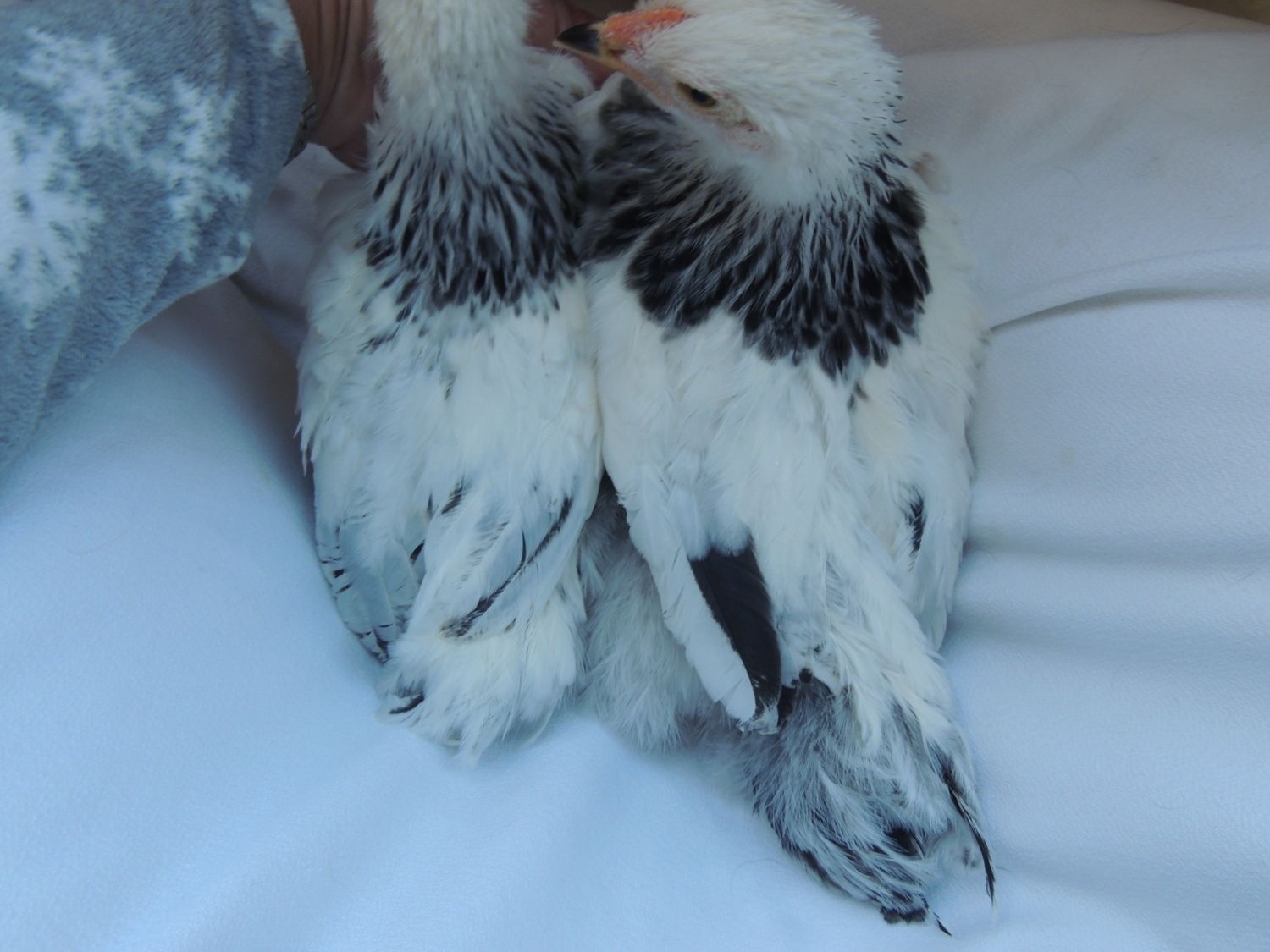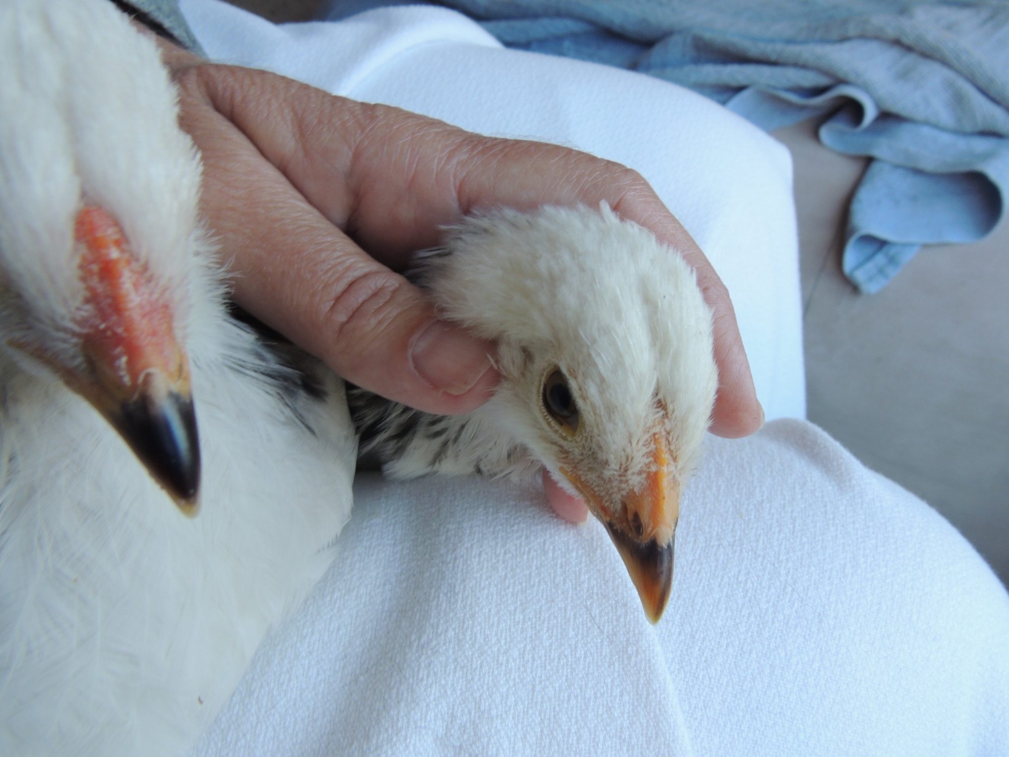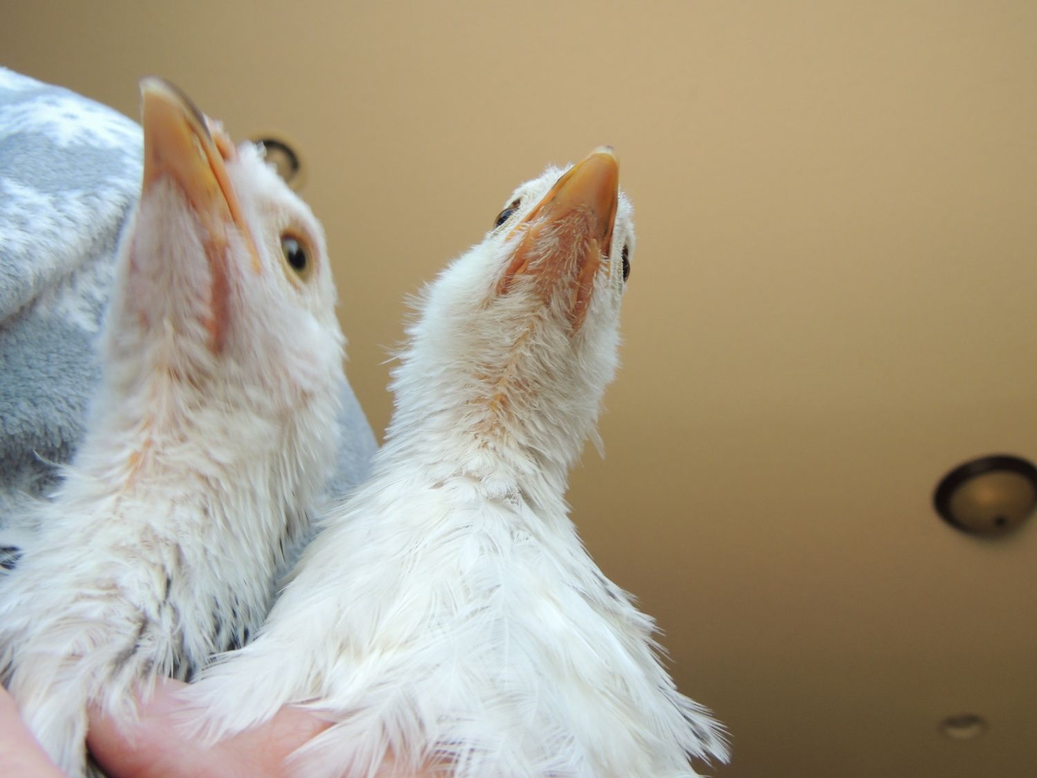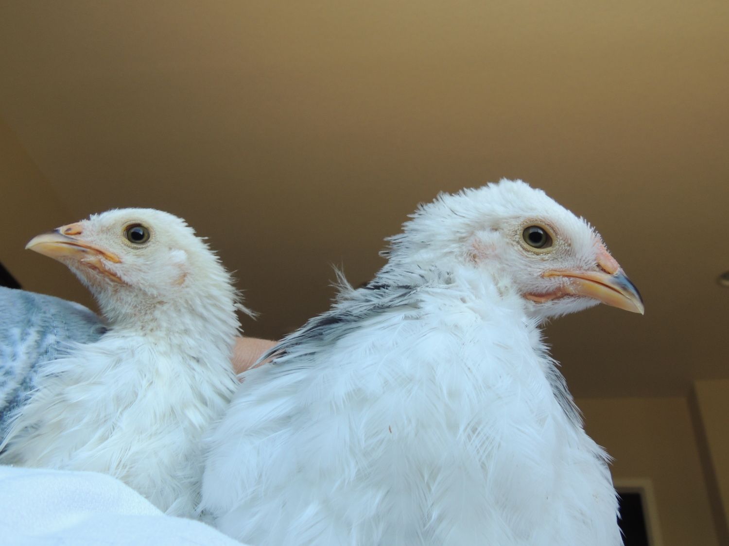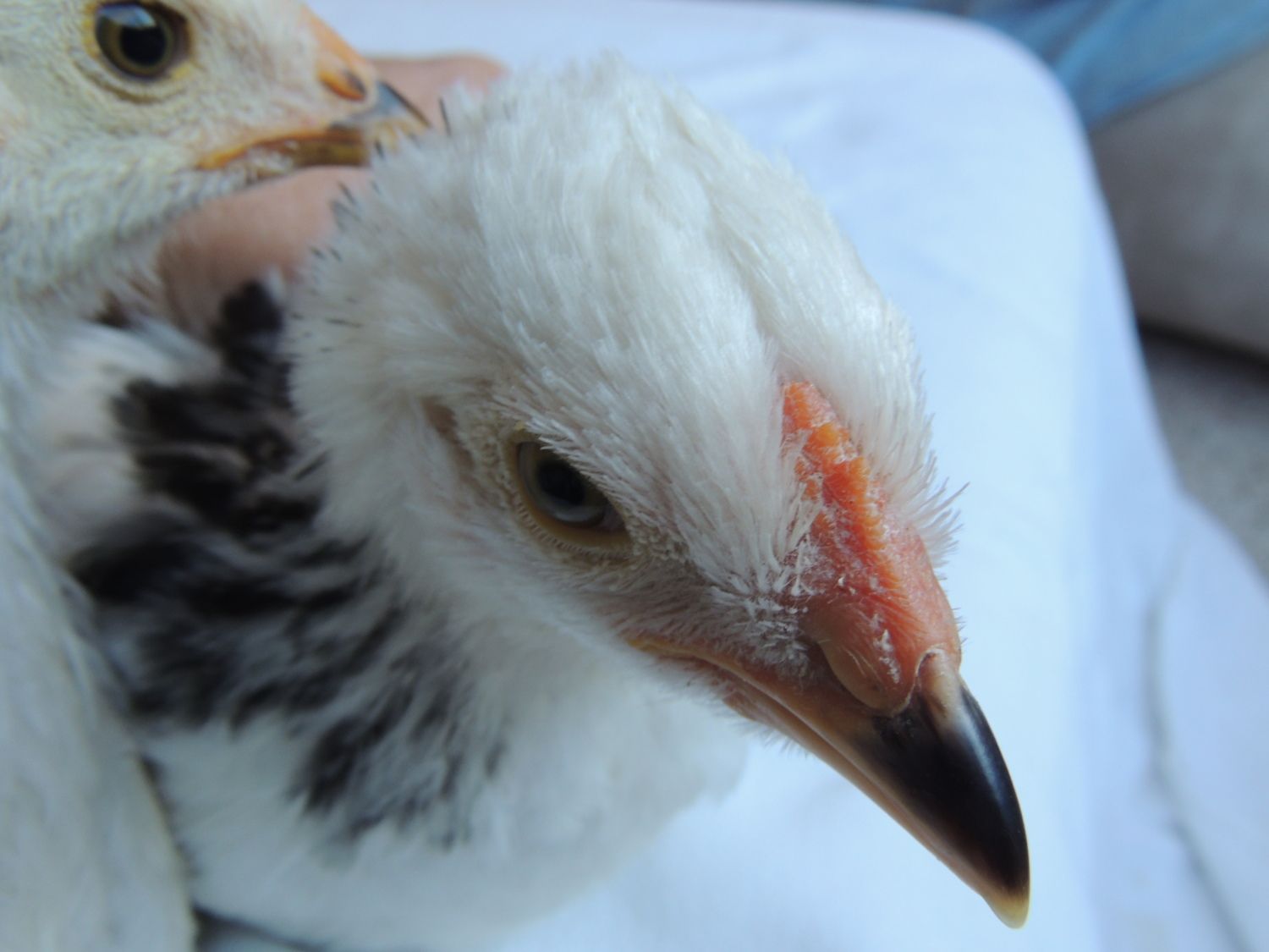 Yeah, the lighting wasn't the best for each shot...sun was running behind the clouds faster than I could click the shutter! The faces are the first thing I noticed. Two of the chicks have this kind of peach color and the other two are much redder.