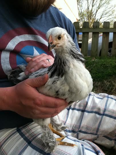 I wish my Buff Orp, Baby, was that way, she's a big snuggle monster but is very possessive about it and is a jealous girl. She started out as a bit of a loner chick, at the bottom of the pecking order, always wanting to come out and cuddle with mom. When they moved out to the coop she started to get ambitious and rose into second in command. When our head hen died she took her position.My Buff Orpington was the same way - she was wonderful with all of the chicks, both the older ones and these.