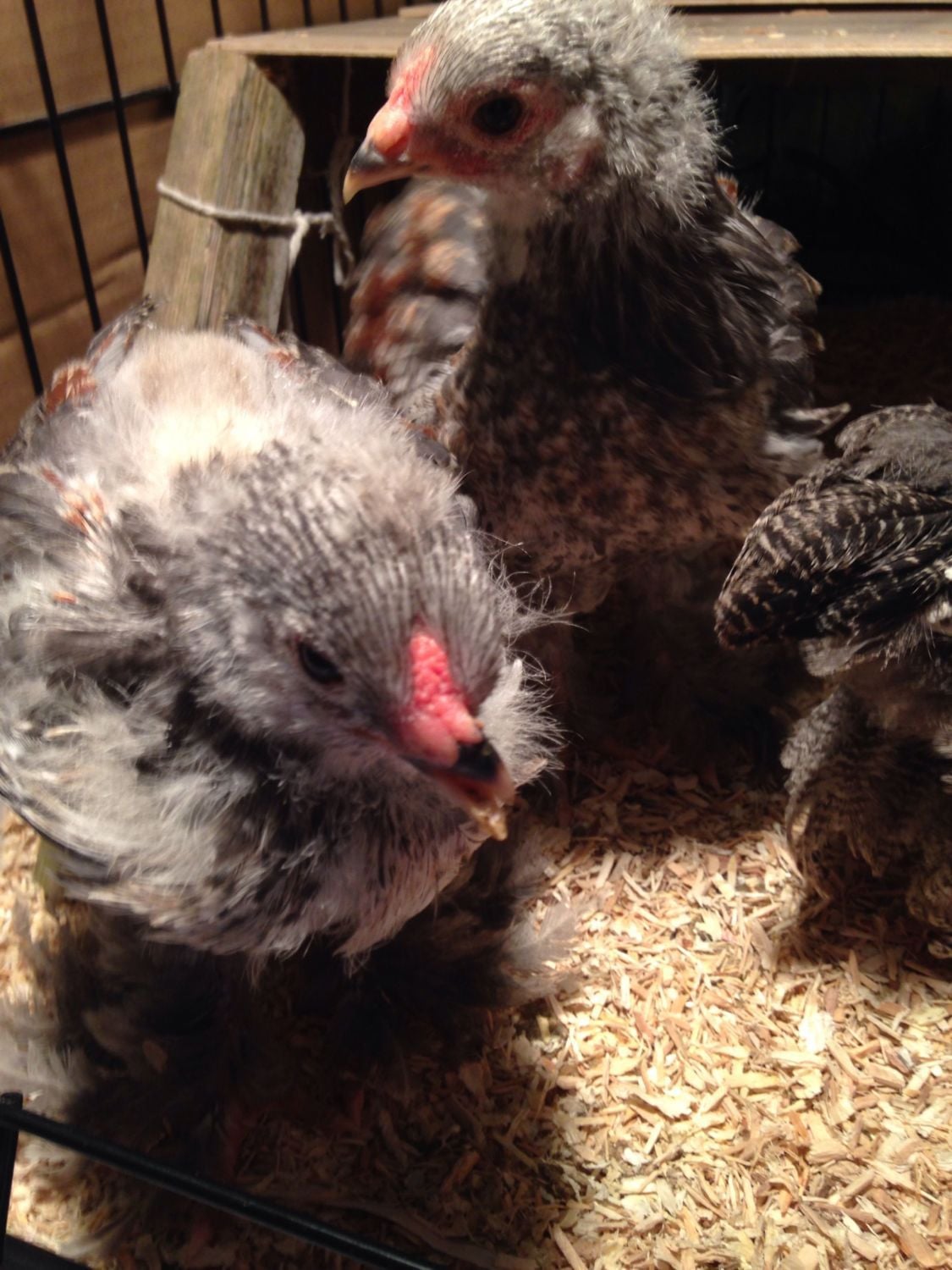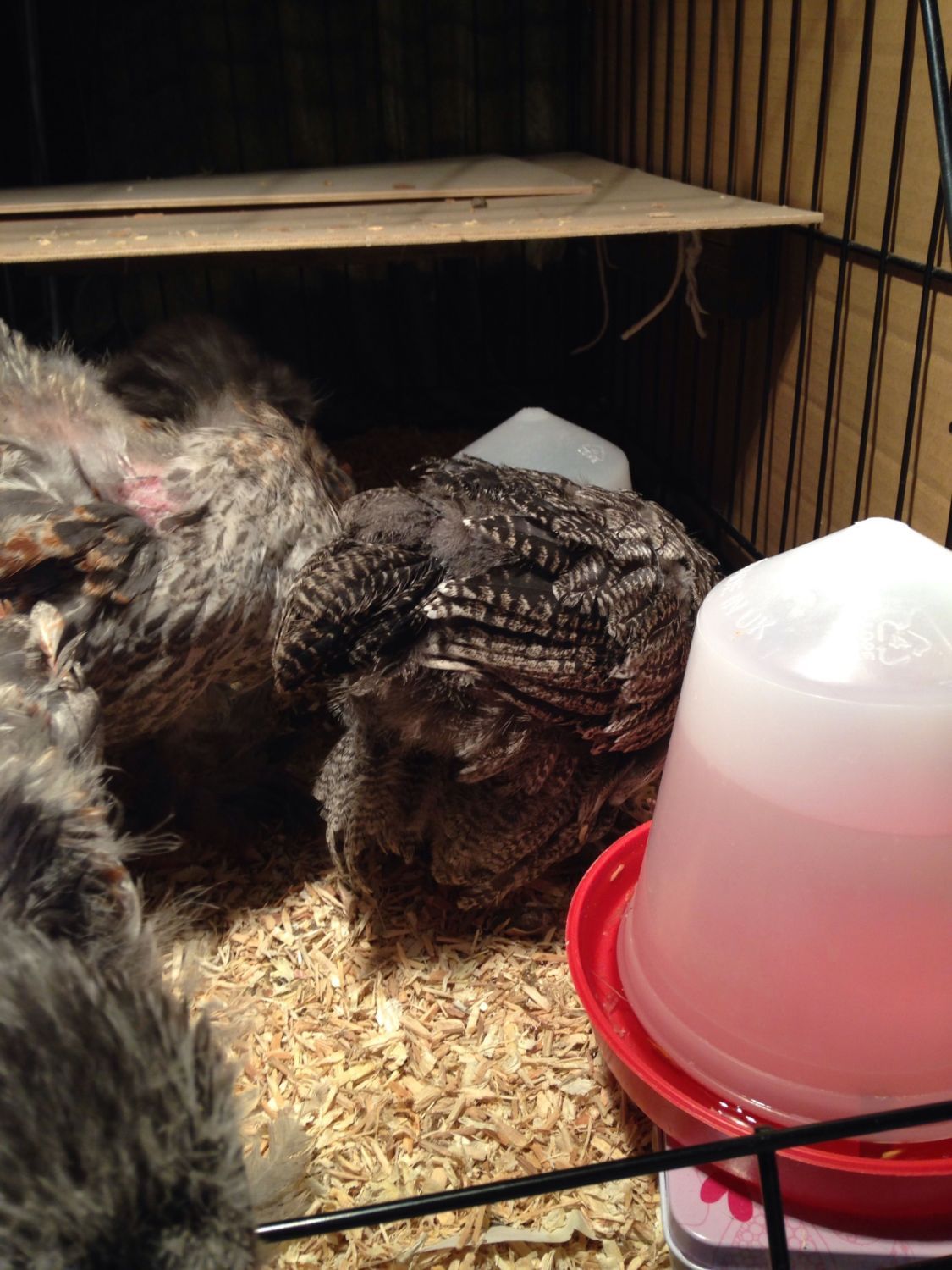 The pictures are the chicks in there brooder with heat lamp at night but they are now outside all day in coop/run.