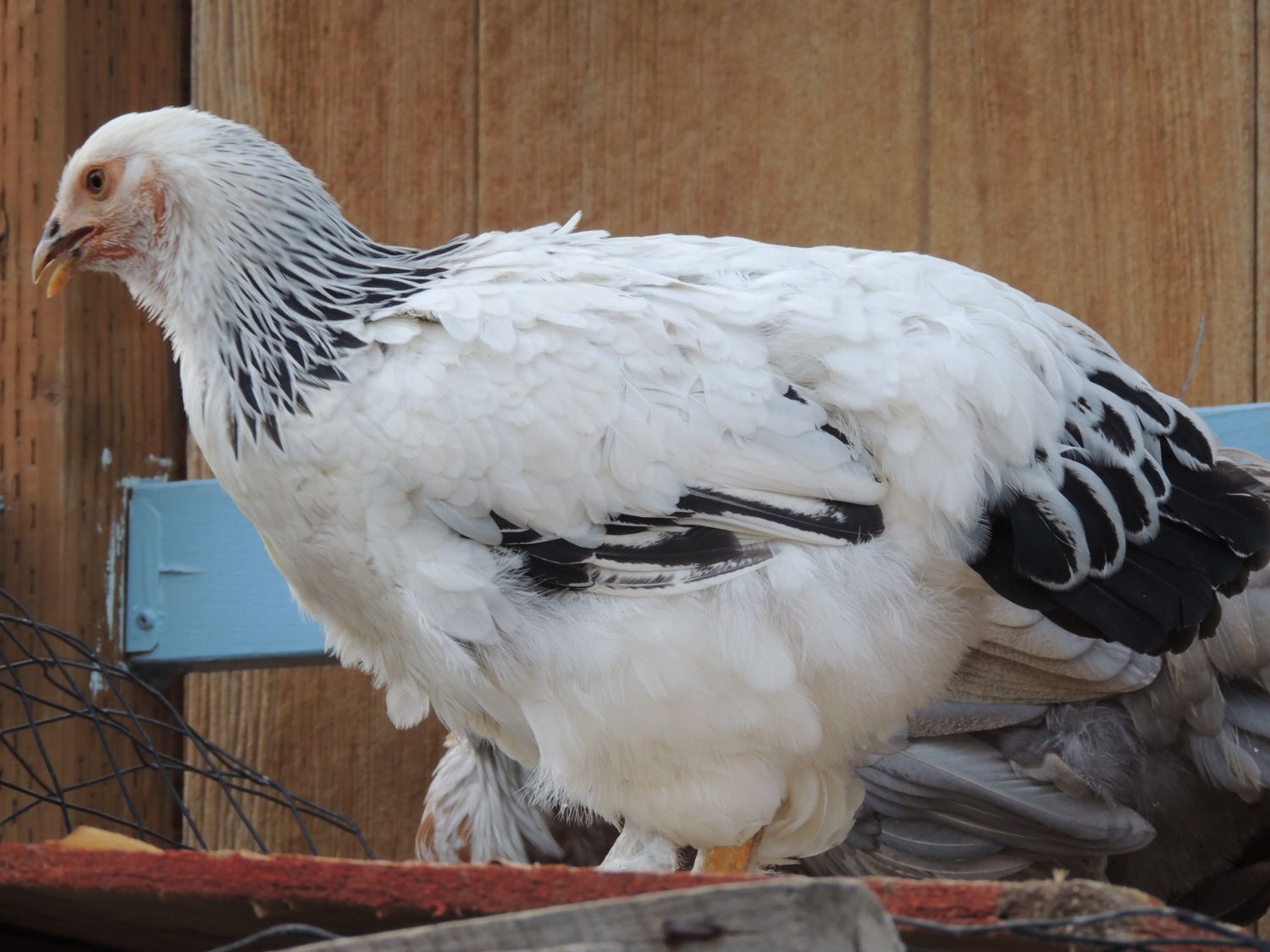 his female counterpart that has fluffy rounded saddle feathers.This last pic shows them together, you can see the difference in tail feathers as well as face too, they were about 15 weeks if I remember right....