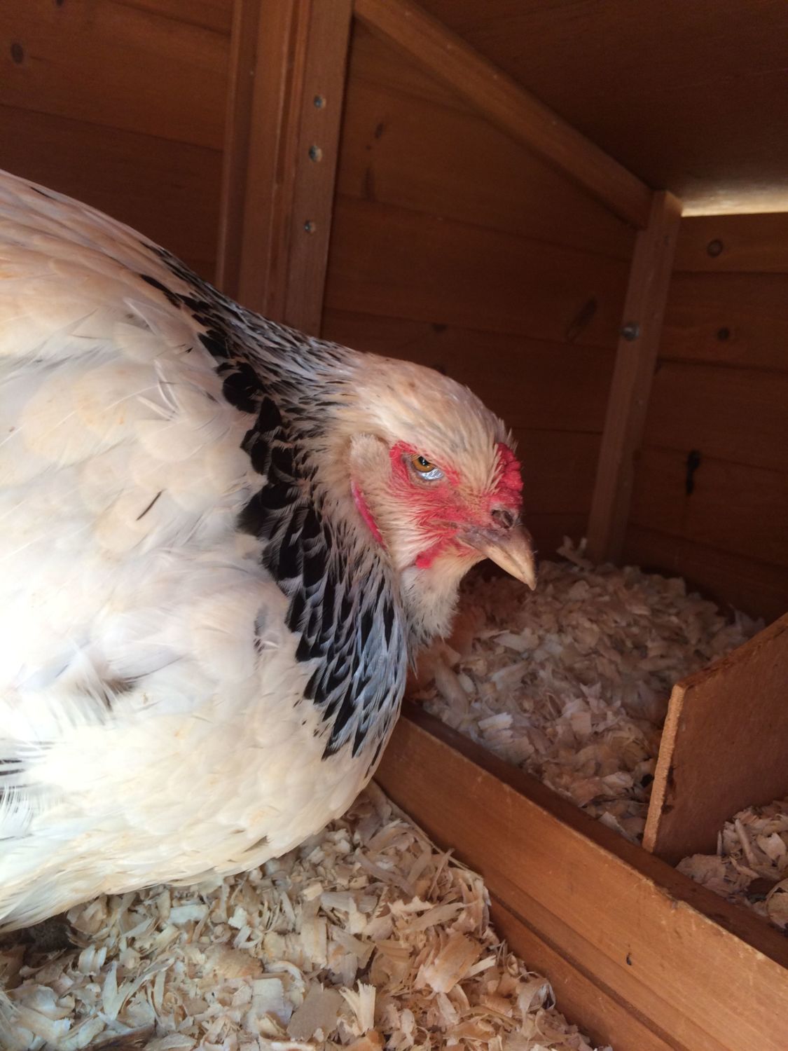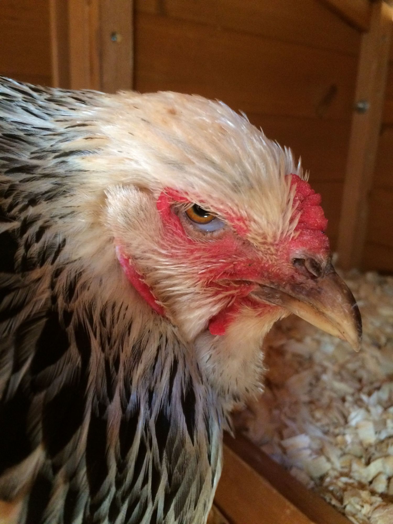 Brahmas have what you call a "beetle brow", meaning there is bone that juts further out in the skull/ eye socket area than other breeds. She seems to have a very pronounced one, but it's a Brahma trait.