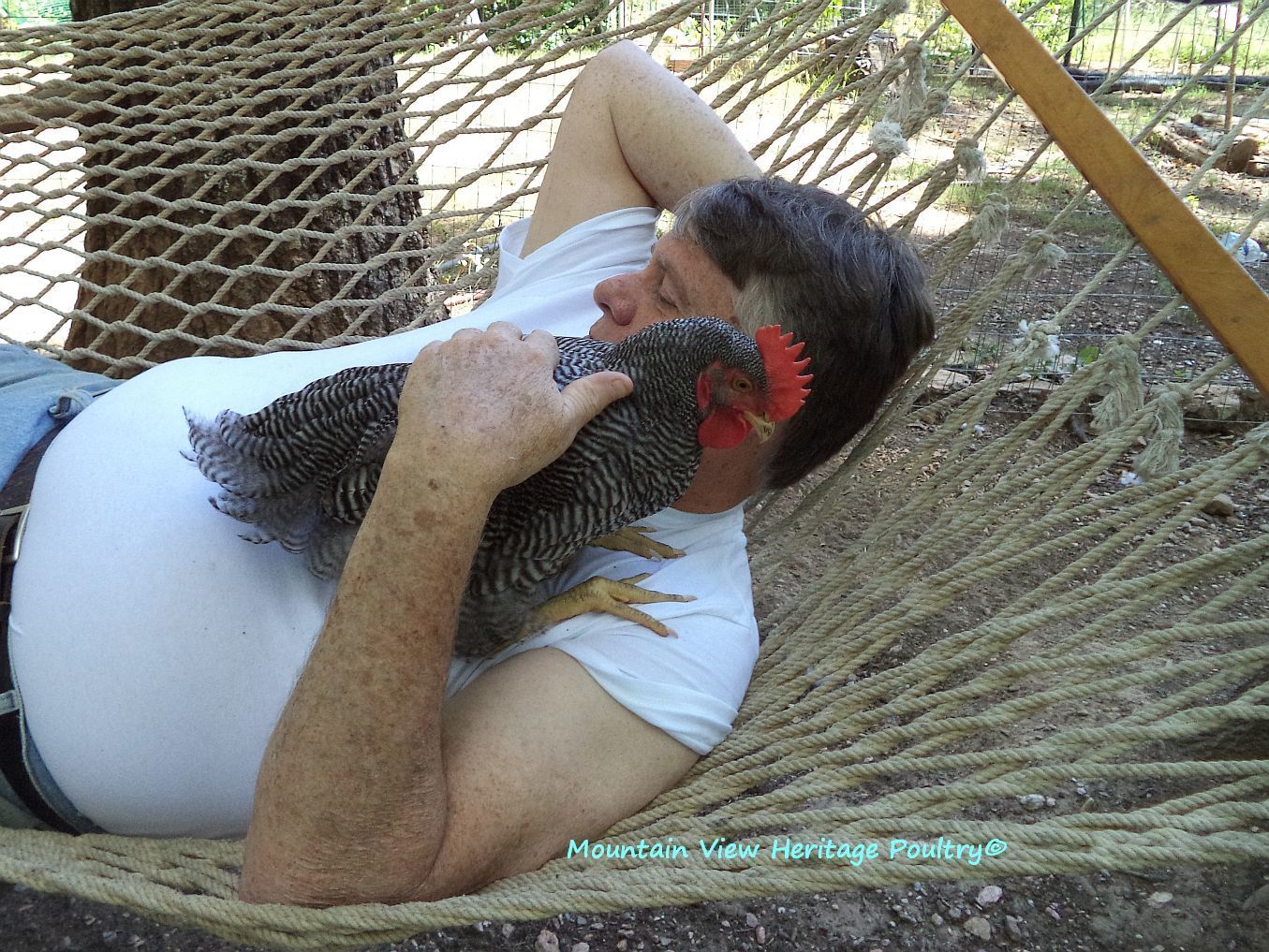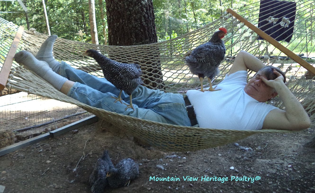 My husband is very clear that he didn't want chickens, but he is mildly amused by my favorite chicken and that when he grabs a shovel she runs after him like a groupie after a boy band. He is very tolerant of her antics ...at least he hasn't "accidently" hit her with the shovel yet......