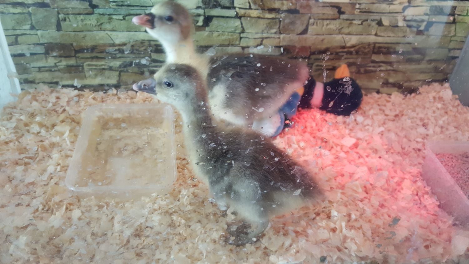 Sorry for the lighting, my spare lizard tank is doubling as my brooder (after a good scrub and disinfecting of course) and the red heat light was already there.