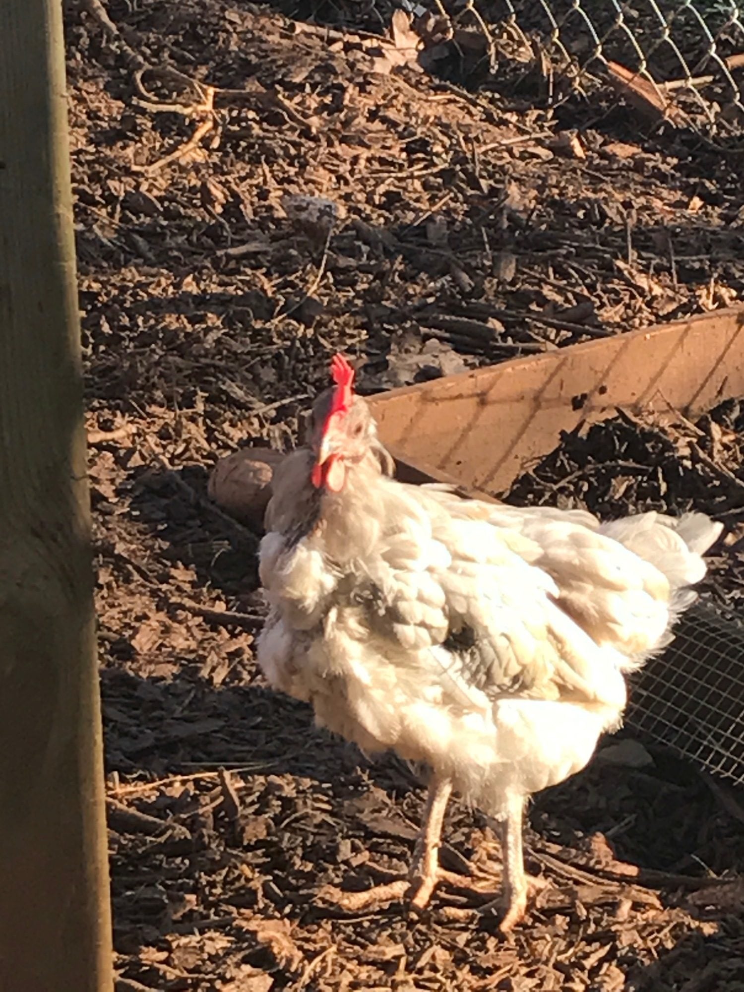 This is our andalusian hen. Over the last couple weeks I've noticed increased feather loss and it seems like she might be loosing weight (or it could be the appearance to the loss of feathers). She's eating fine, but just prior to this stopped laying eggs. She's super fast, so to catch her to look for other symptoms would be great- if I know what to look for! Thanks for your feedback