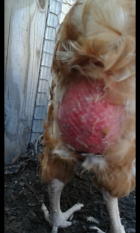 We have four chickens, but we seem to have a problem with the leader. She has a really red bottom, this doesn't seem to aggravate her she also doesn't scratch it. It started with just a bit less feathers, the problem got worse so we got some insect powder and followed the instructions. We left it for a bit to see if it would help, but the problem just got worse.It looks really bad but when you touch it she doesn't seem to worry about it. What could be the problem?