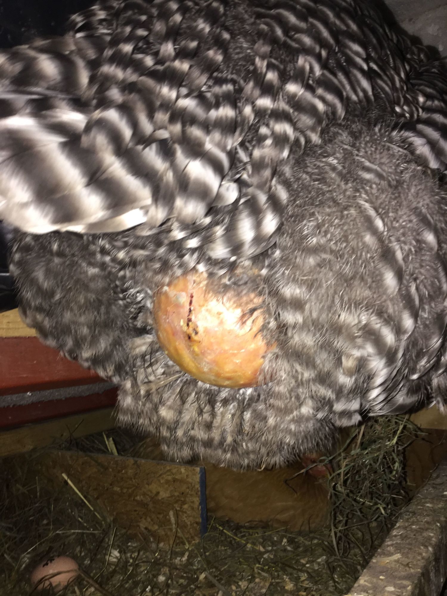 This bald spot has always been more protruding on her body... If almost feels like silicone! None of the other hens have bald spots, only her (I'm assuming maybe its more common in her breed?). She has never shown symptoms of anything so I left it alone and nothing has happened. I know for a fact the feathers will not be coming back, as she has molted and none of them had reappeared or shown any signs of reappearing.