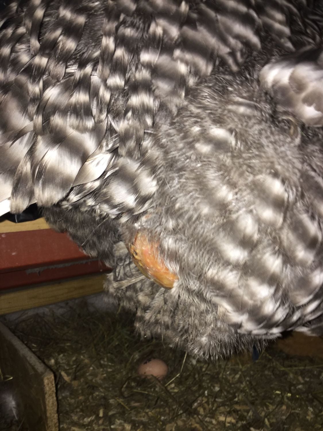 The temperature has been be below freezing but inside of their coop is a heater that makes this living area warmer, not to mention body heat from the other hens. The floor has hay and pine shavings on it and is quite soft, though Rocky sleeps on a small perch with two of the other hens a few inches off of the ground. Her appetite is as normal as it always has been as well as her drinking.