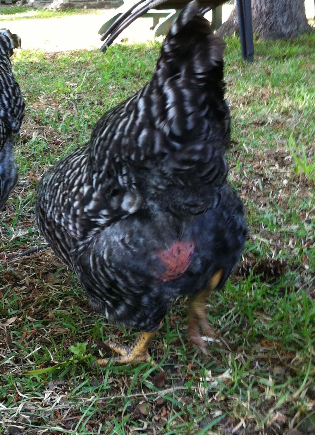 I'm a newbie, so don't know what is going on here. I have two Barred Rocks that have recently developed bald spots on their undersides. Anyone know what/why? My third Barred Rock has not developed this and my three Golden Comets are fine, as well. They are laying regularly and don't seem to be sick.
