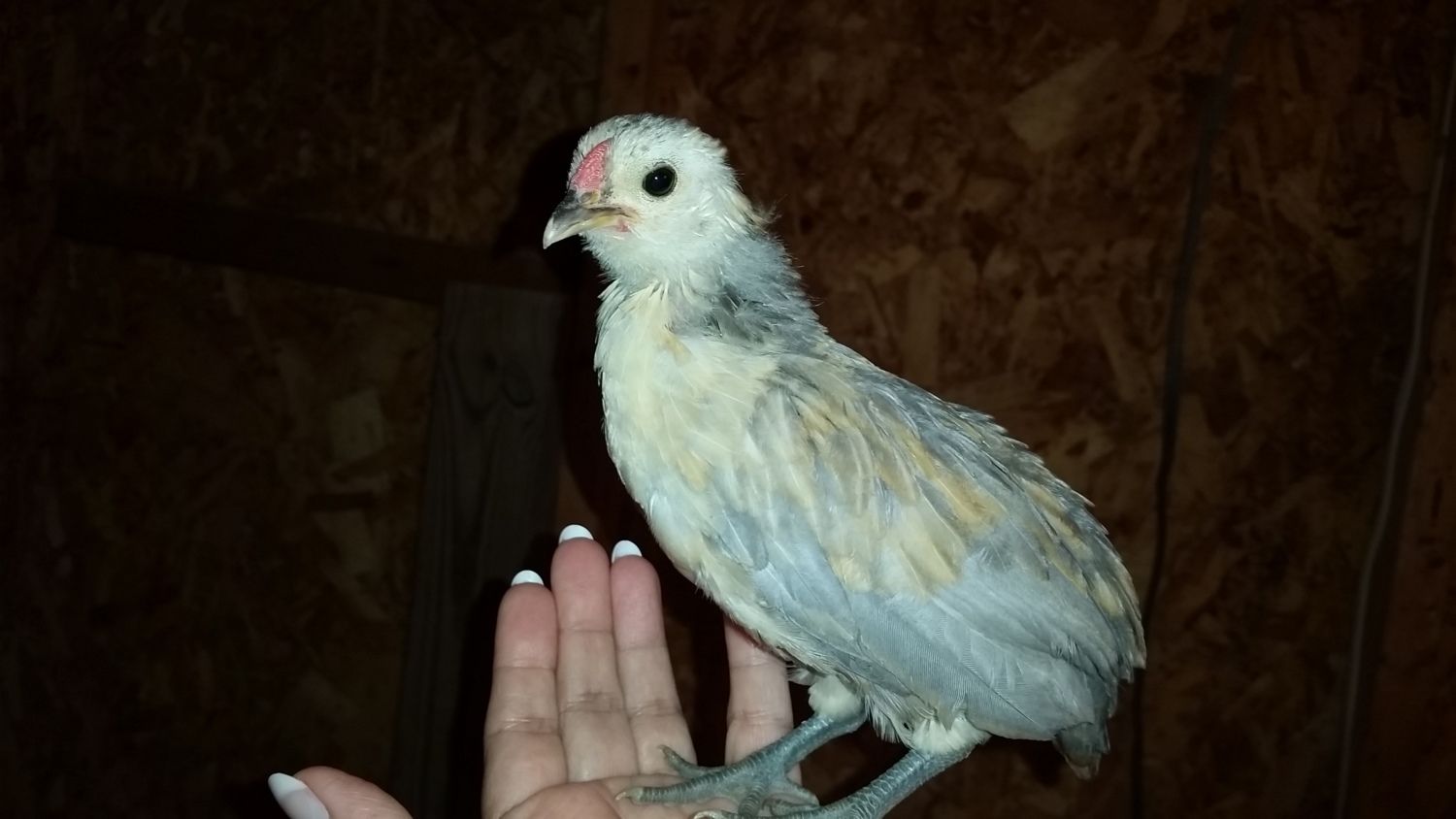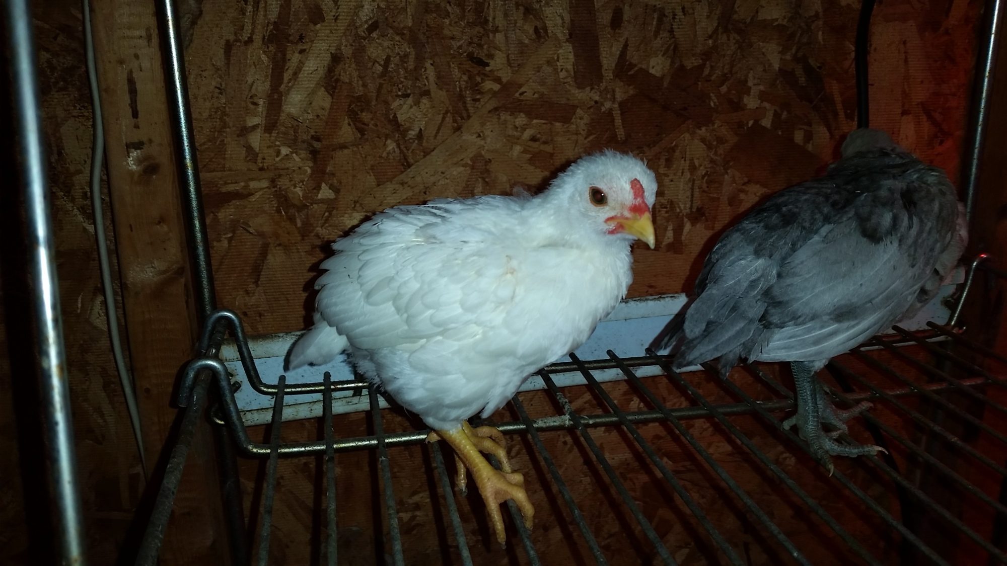 The white on is a solid bright white (as you can see better in my profile pic) with a red pea comb and has become aggressive to my other cockerels lately.