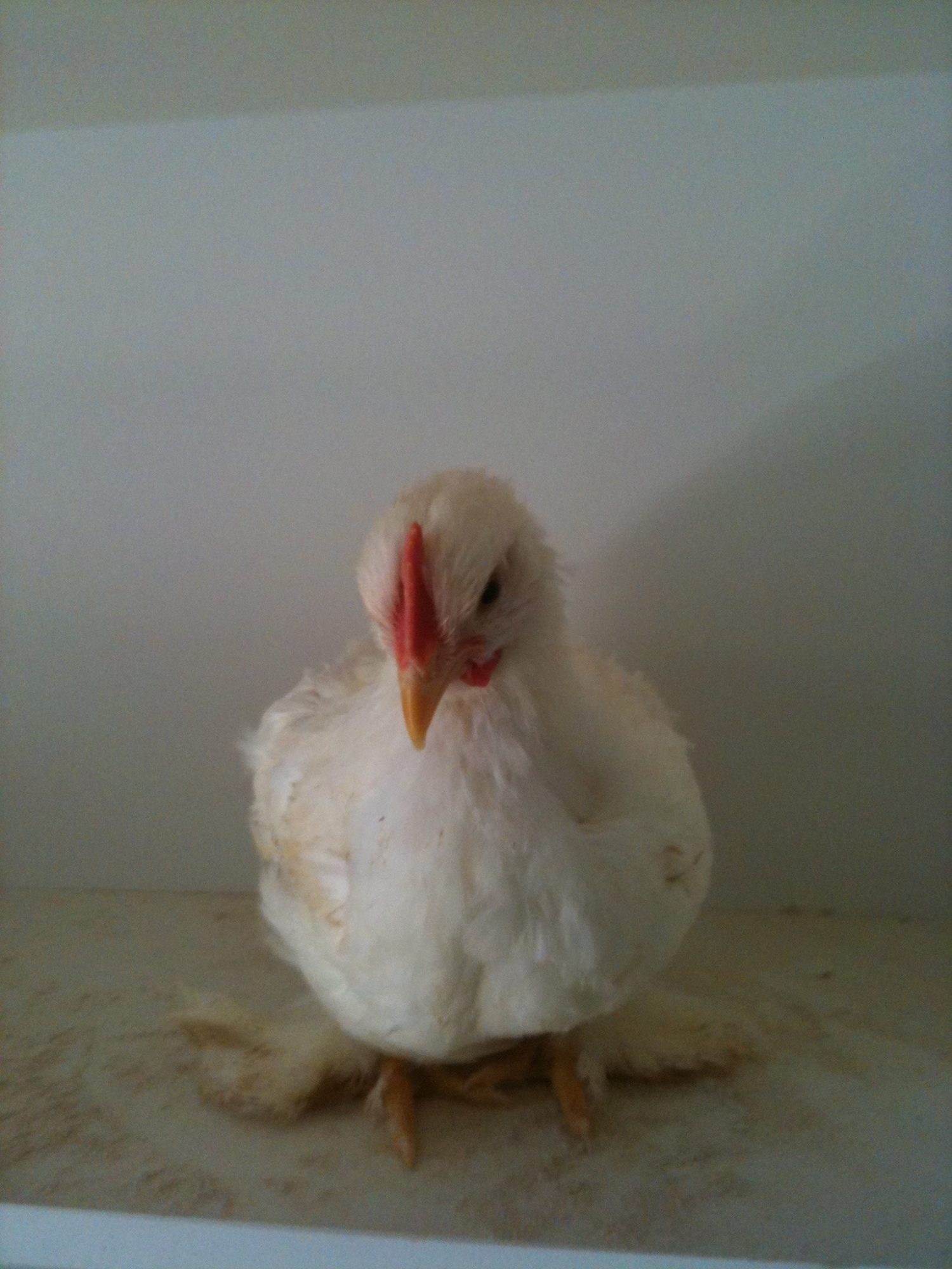 yes he does i also have a buff cochin bantam same as his but the buff one is older and also have a red one i got a couple of bantams