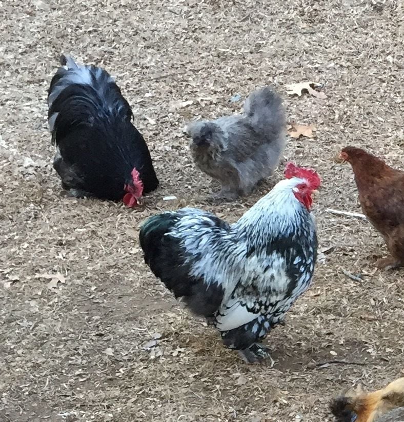 Currently the silver-laced is the dominant rooster, the two do not fight as they established their order a year ago.