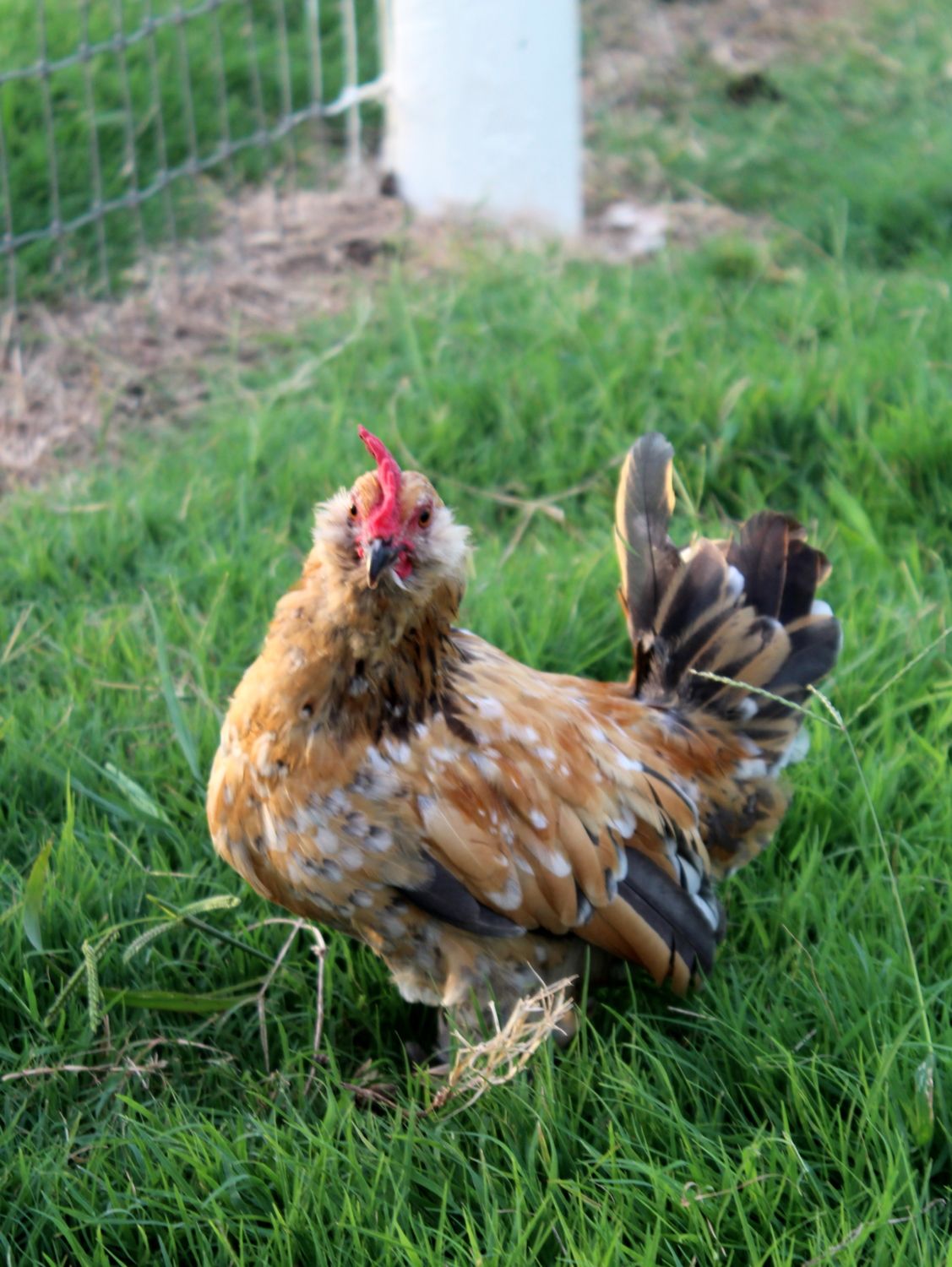 This is a hen, and the colour of her reminded me of your bird in question. It's not what I typically see in Mille Fleur D'Uccles.