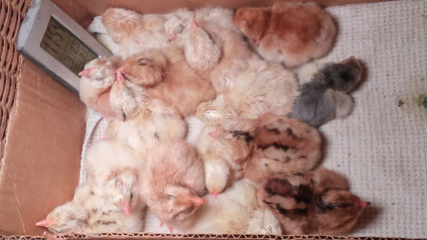 16 so far...3 bantys...9 more waiting to hatch... I got my Calico egg and my 2 frizzle eggs mixed up...