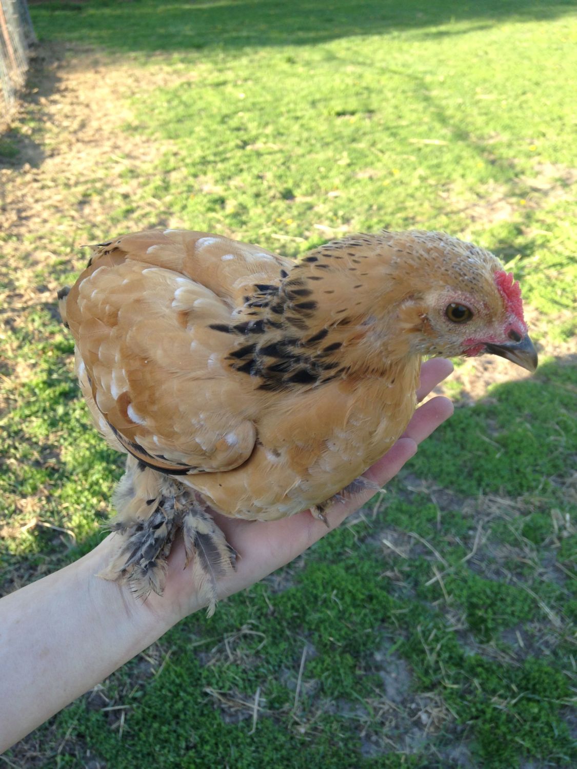 Thankshe's a little older now, has a beard and tiny wattles, he's also more stocky, hasn't started crowing yet but his half brother did a couple weeks ago.