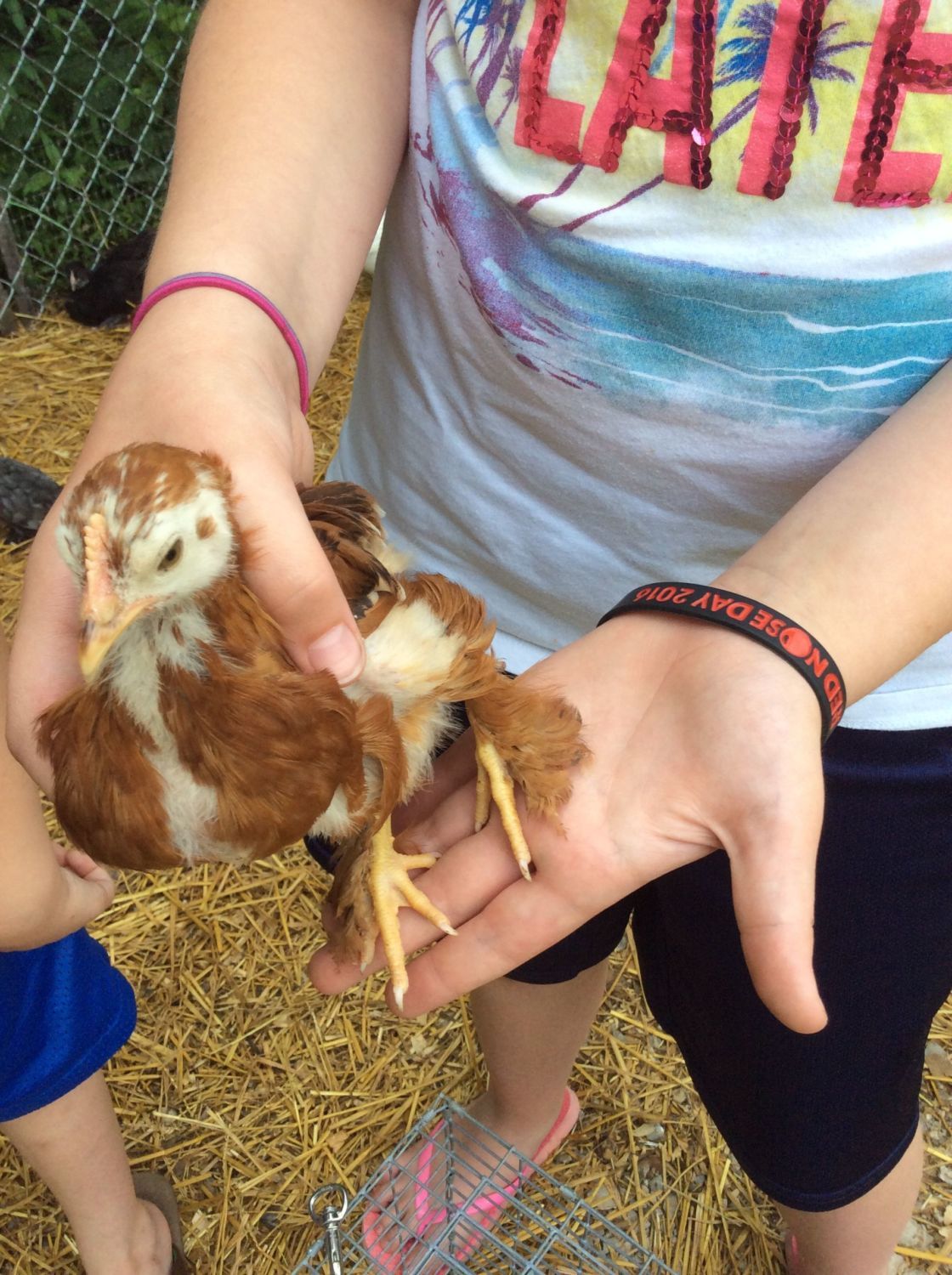 It has white and black spots on the end of its feathers an my other reds never had that.That is a Red Cochin
